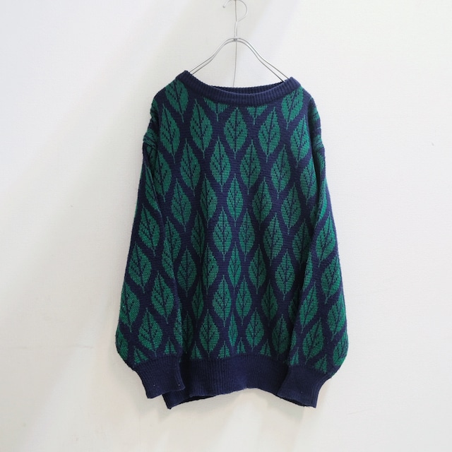 自然が育む恵みを表現。 濃ゆい紺色は雨を連想させ、所狭しに敷き詰められた葉っぱとリンクしている様に感じます。 欧州は自然物をモチーフにする事が多く、こちらも例外になく自然から来ています。 自然物のモチーフって否応になくなんか癒されます。 【採寸】 Size 40(L) 肩幅 51㎝ 着丈 61㎝ 身幅 50㎝ 袖丈 53㎝ 古着の為、多少のダメージがあります。そちらの方をご了承の上、お取り引き宜しくお願い致します。 ※返品、交換はお受け致しません。 ※入金確認が完了するまで、店頭販売を優先させて頂いております事予めご了承ください。 お取引中に完売してしまった場合は頂いている情報を元にメールにてご連絡致します。