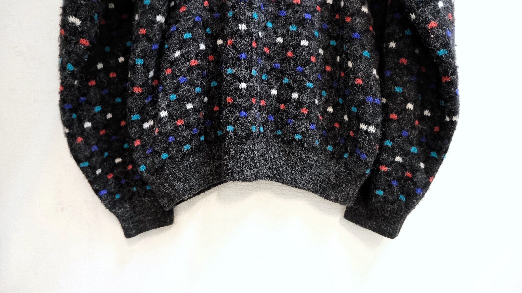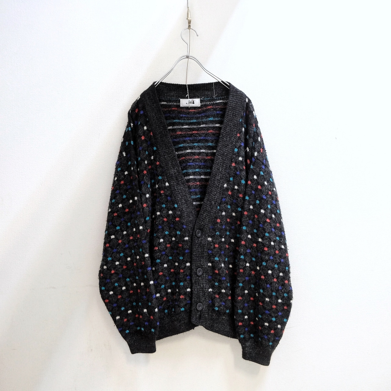80-90's Mulch Dots Shaggy Wool Knit Cardigan