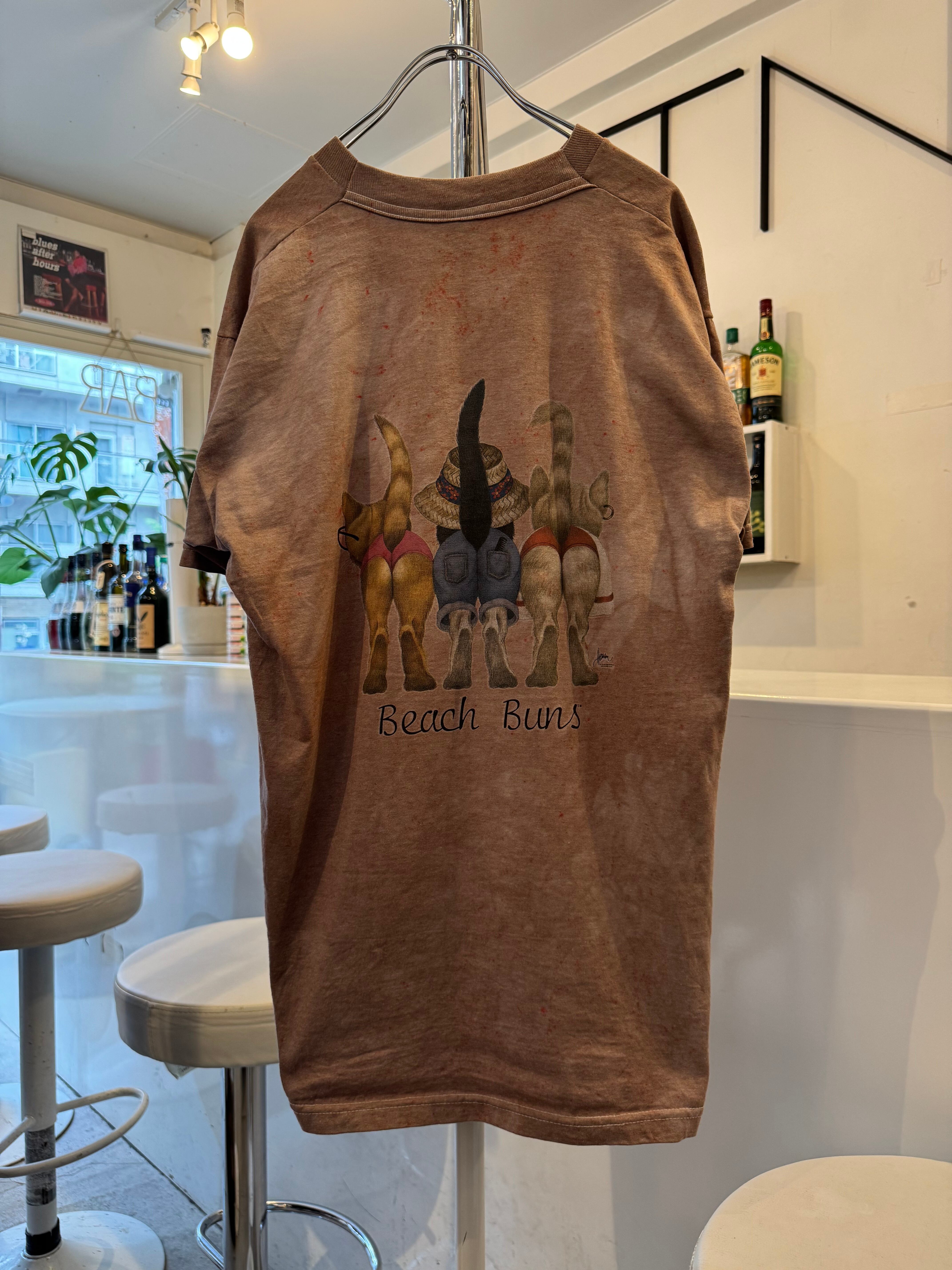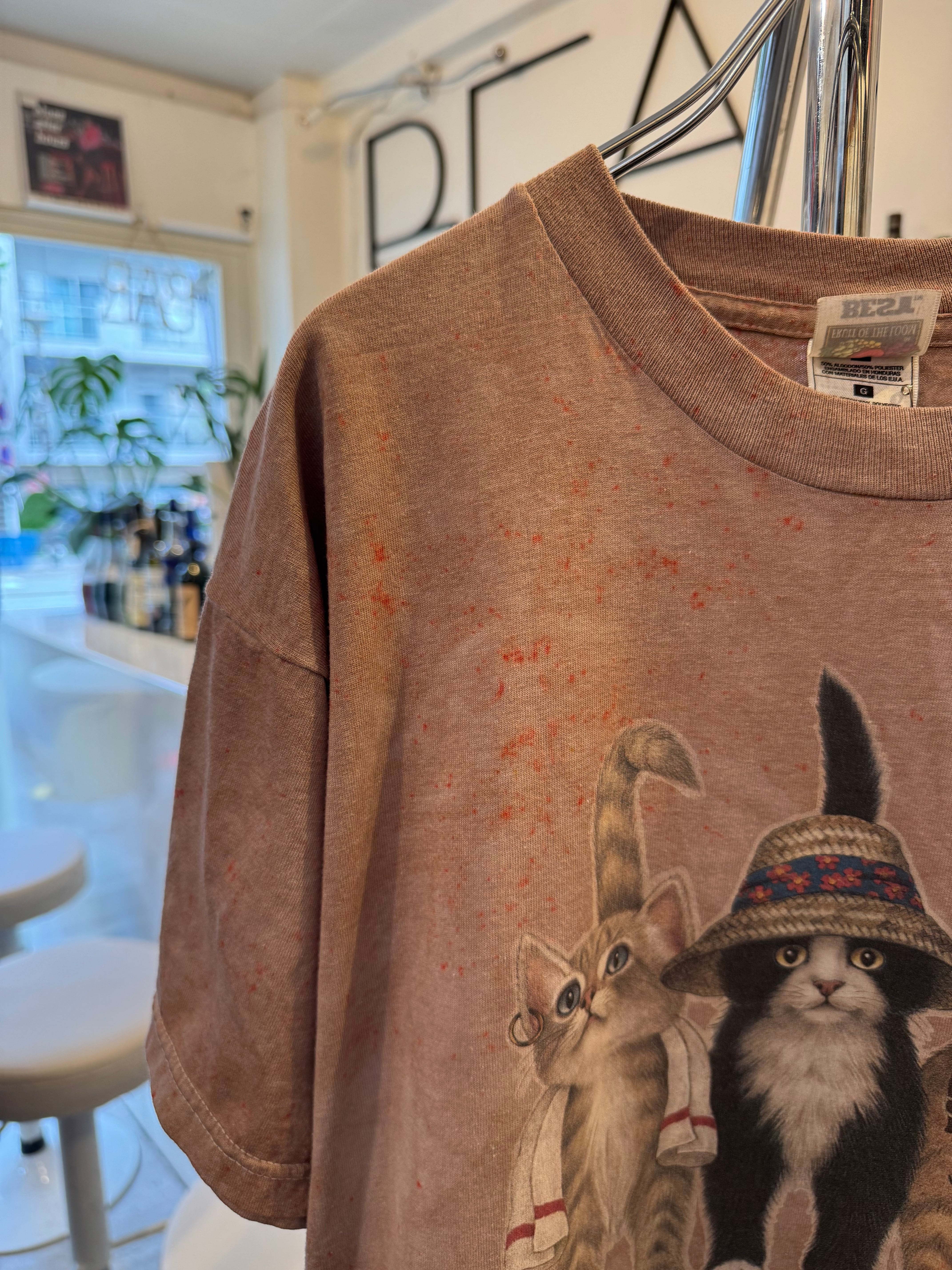 90-00's Beach Bums "3匹のネコ" Vintage Overdyed T-shirt