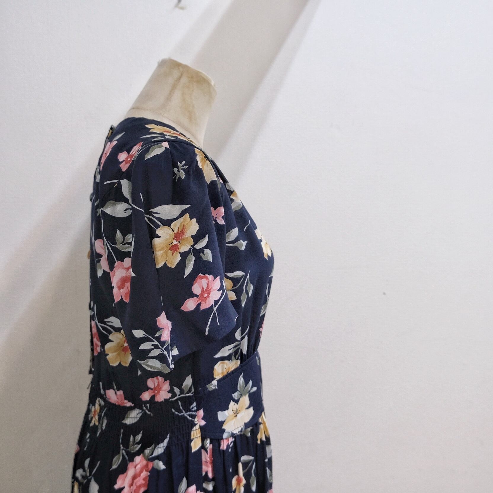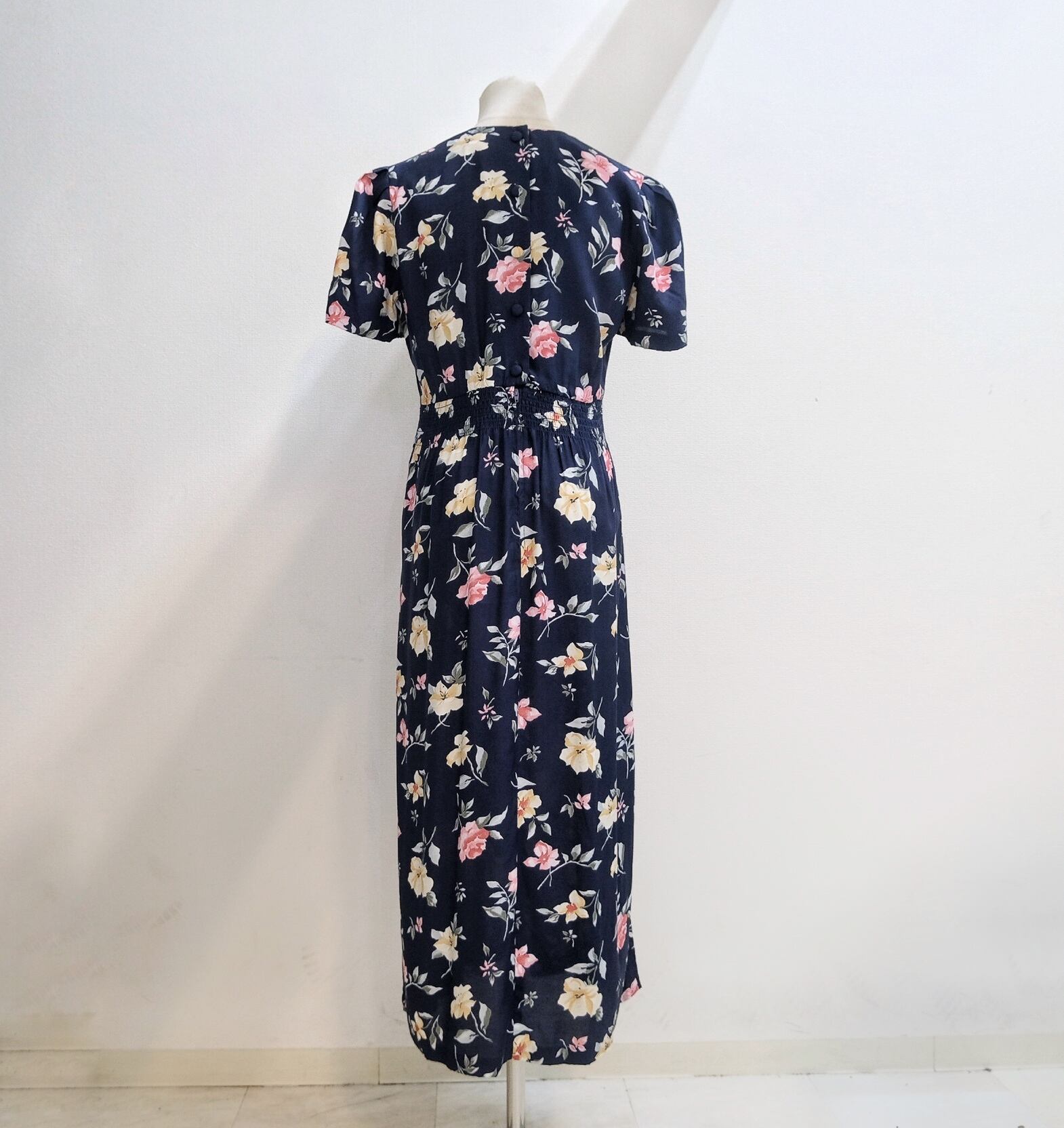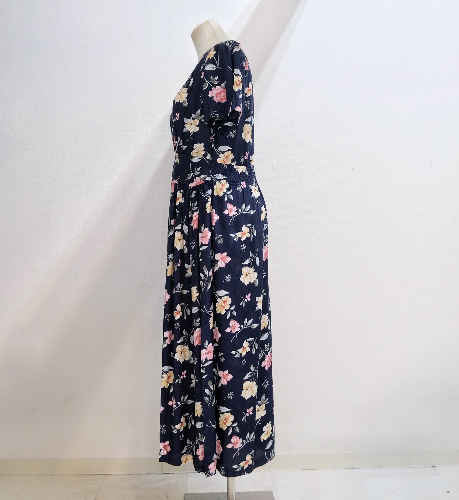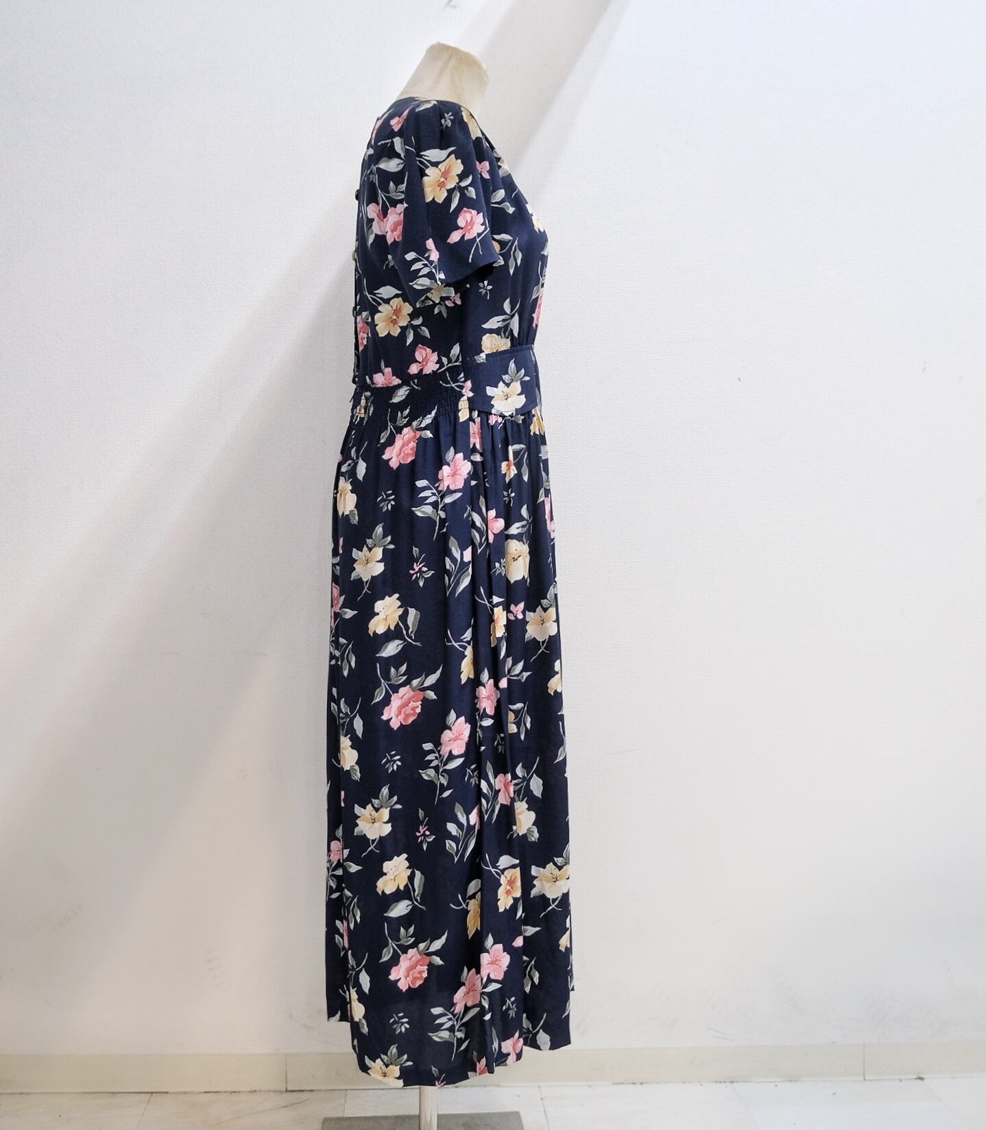 80年代らしいどこかノスタルジーな雰囲気を持つ花柄ワンピース。