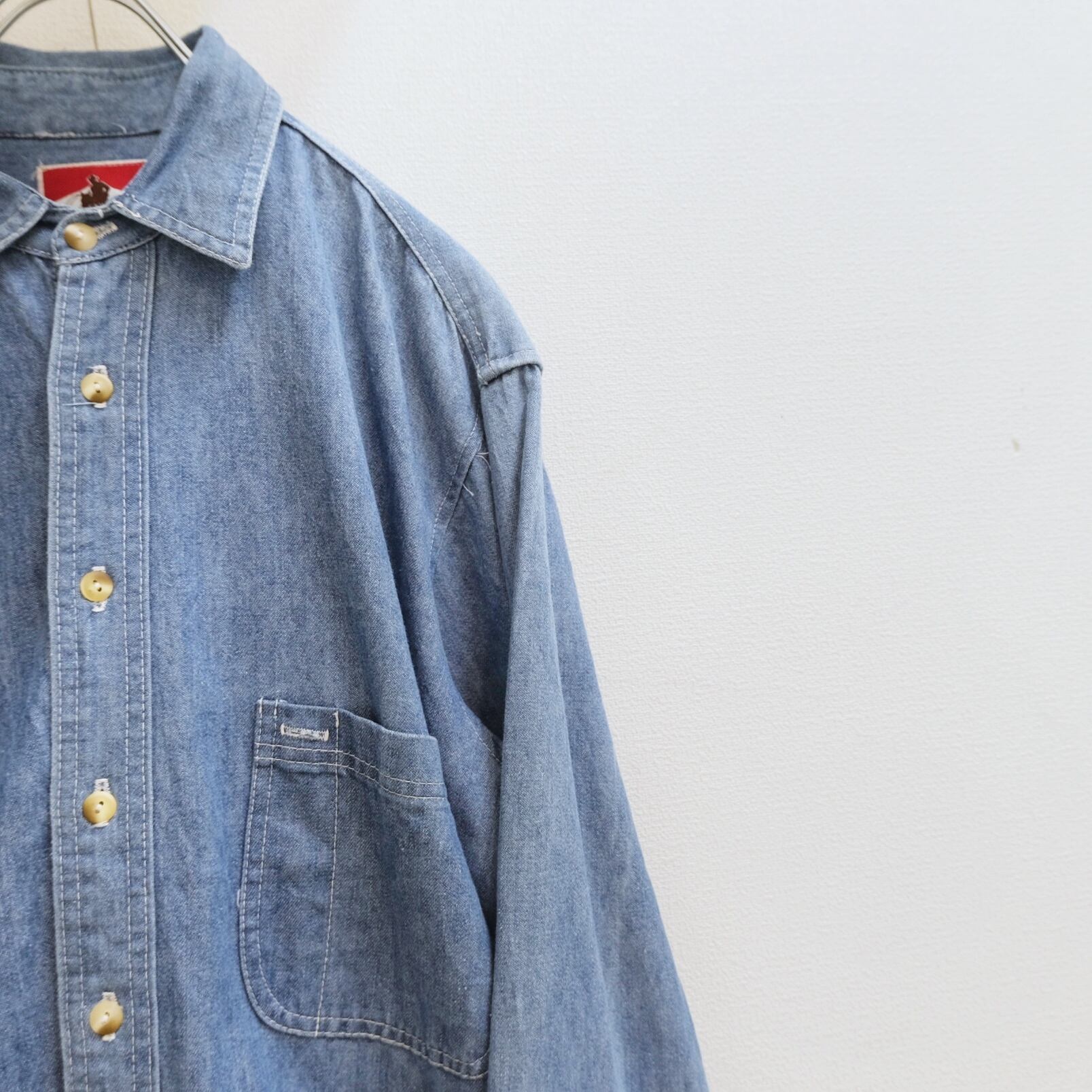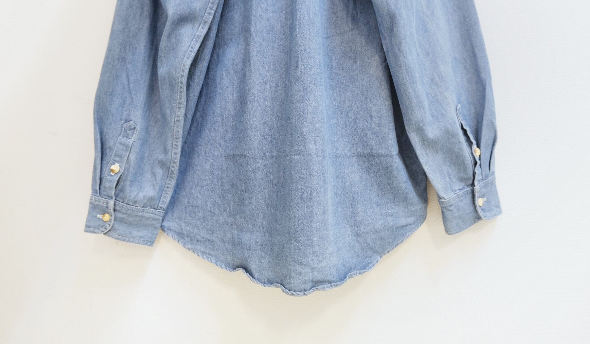 古典的なセットインスリーブ(肩と脇下を垂直に取り付けた袖)を採用しており、ポケットにはペンポケット。ややがっしりとしたデニム生地と『ワーク感』の強い個体。
