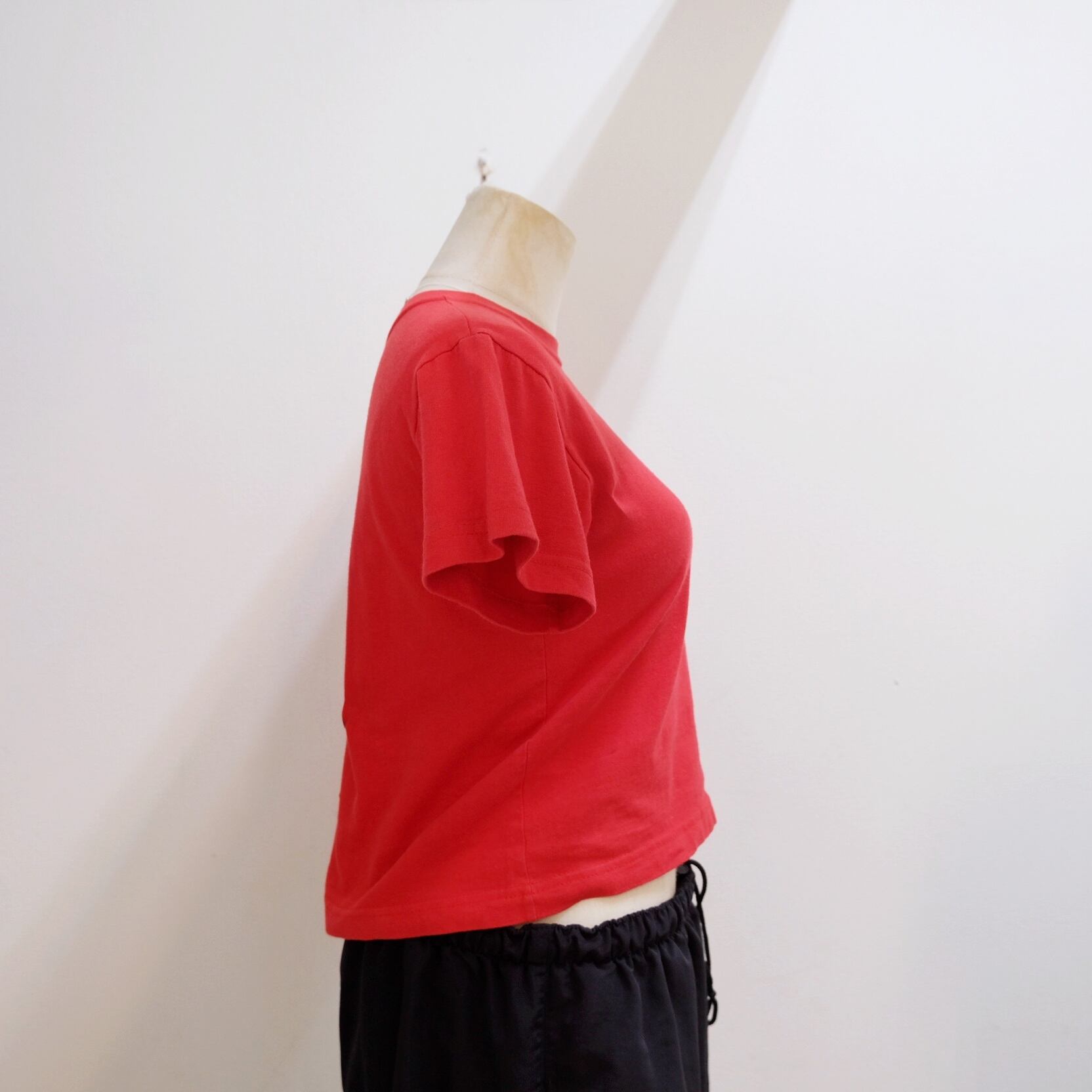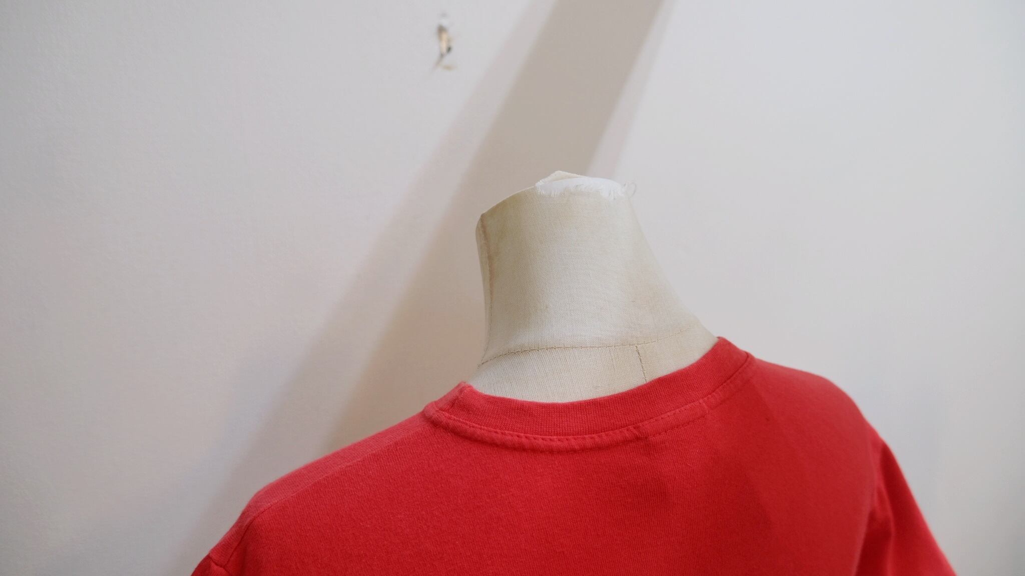 ビビッドに映える赤なので、一枚で着るは勿論。インナー遊びで使っても良いアクセントになりますよね。