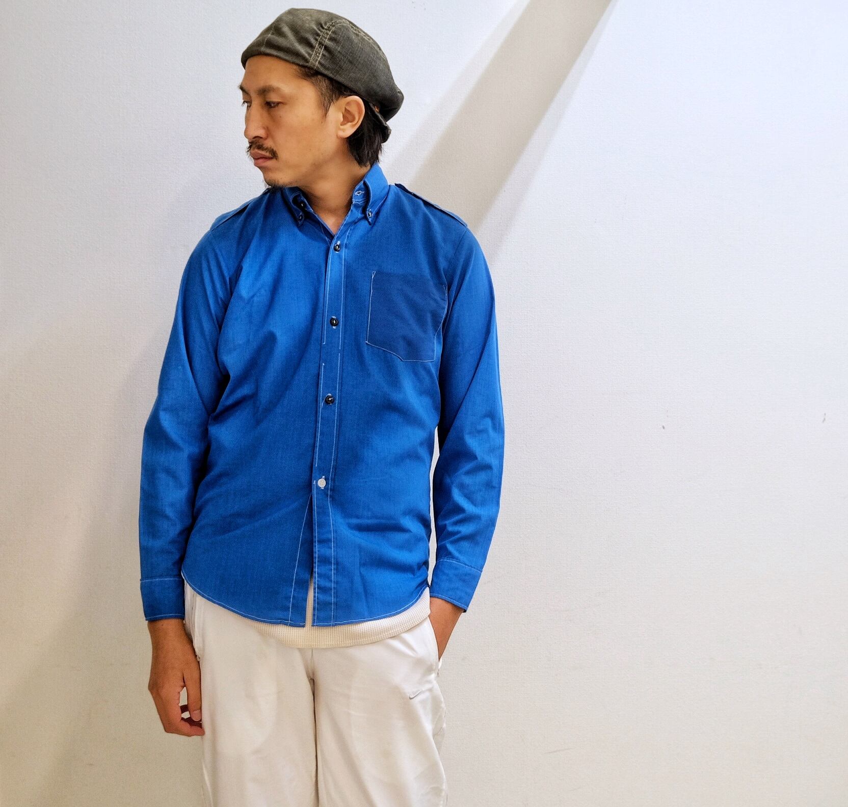 ポプリン生地で作られた簡易的なシャツは鮮やかなコバルトブルーで織られております。