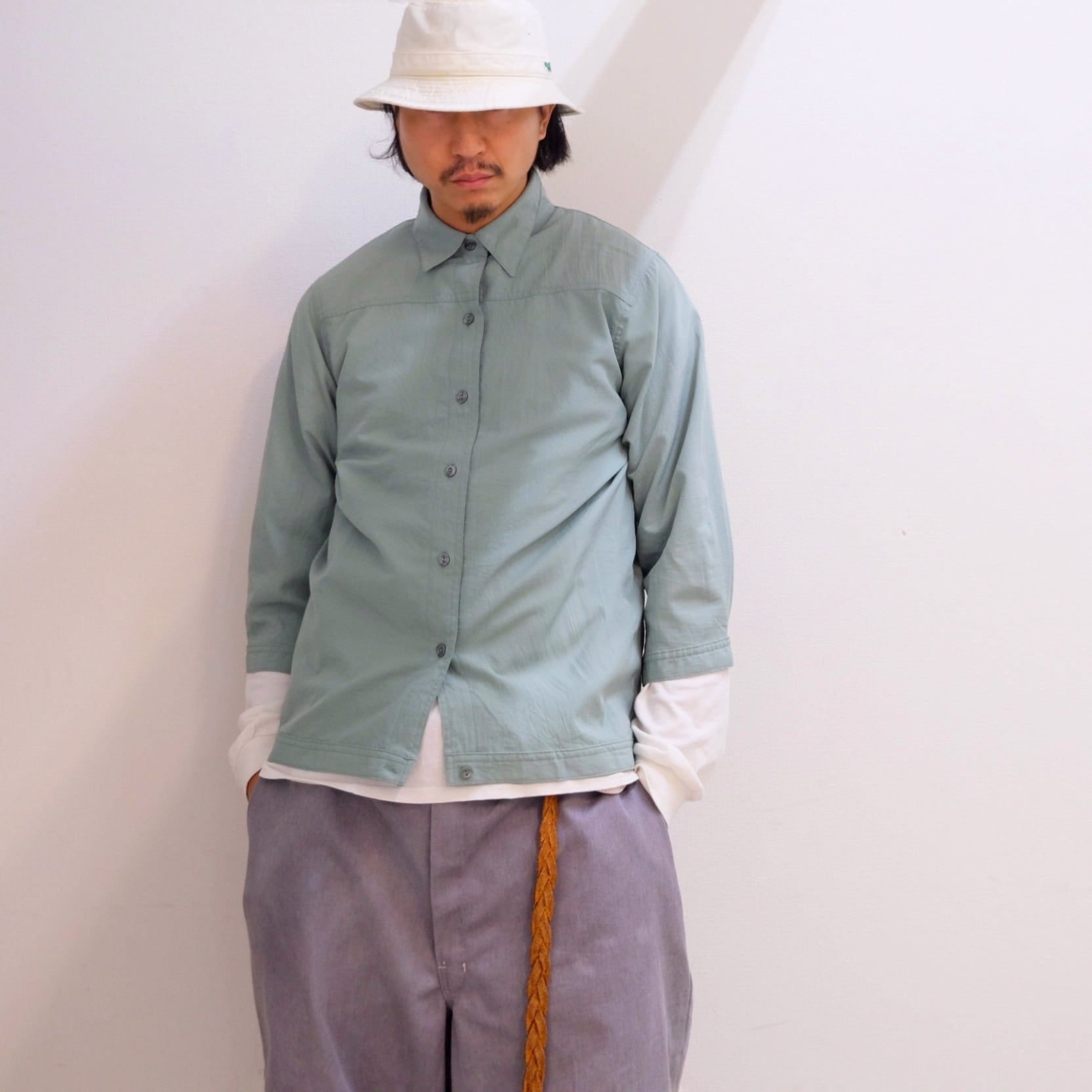 着丈が短く、ボックス型のシルエットはジャケットの様な立ち位置としても使えるマルチなアイテム。