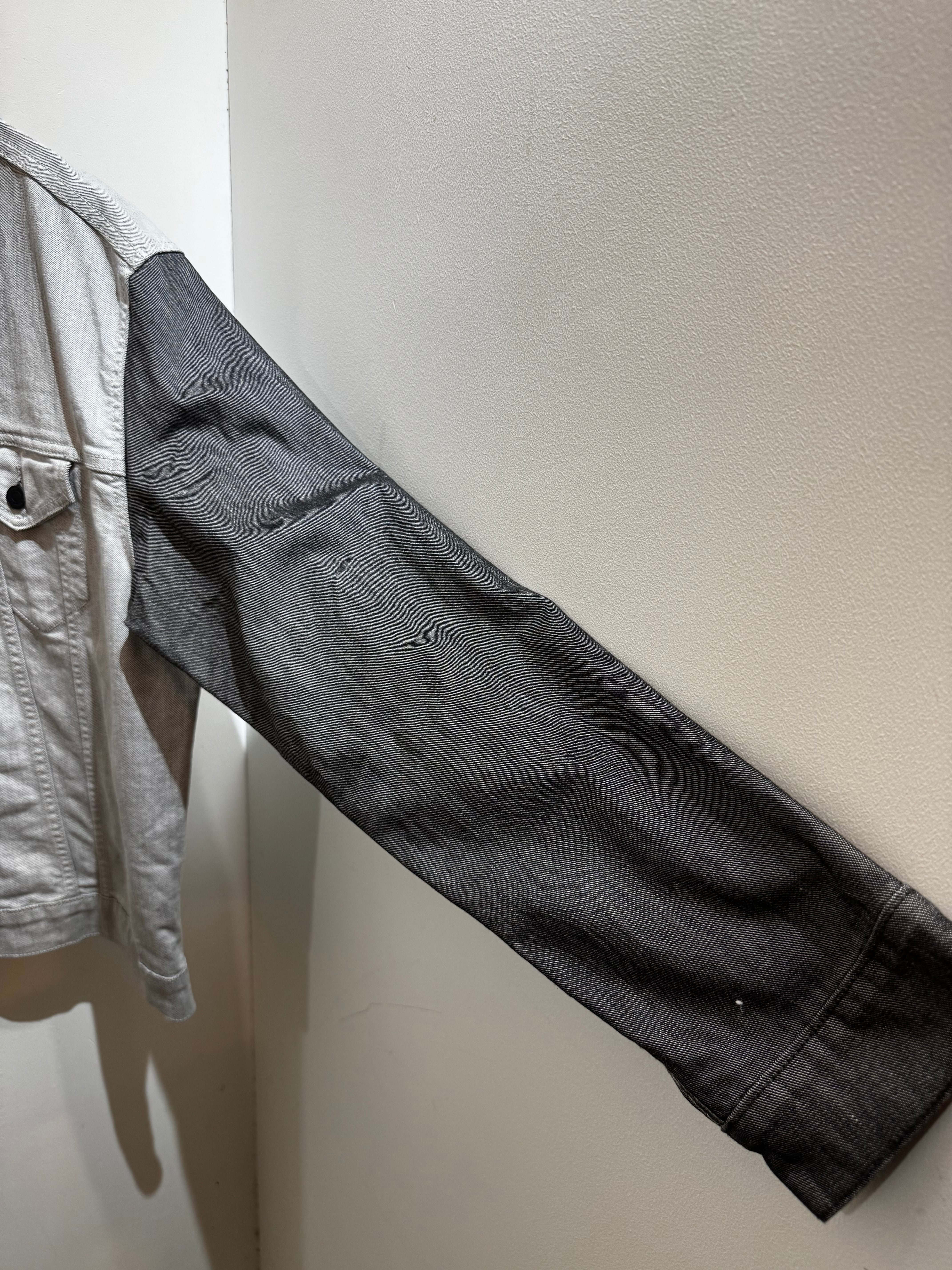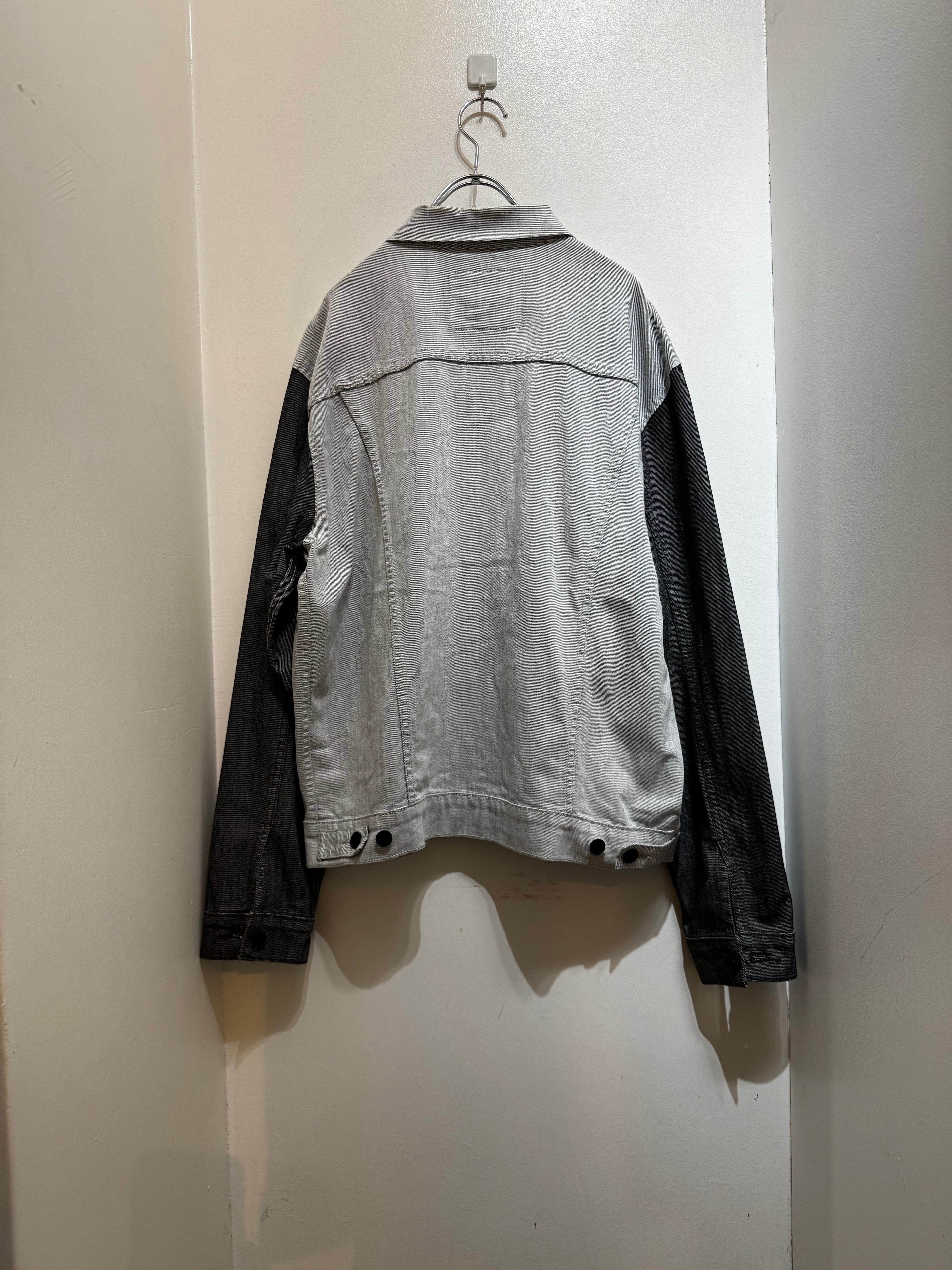 モノトーンでバイカラーを施した現代的な変化球デニムジャケット。