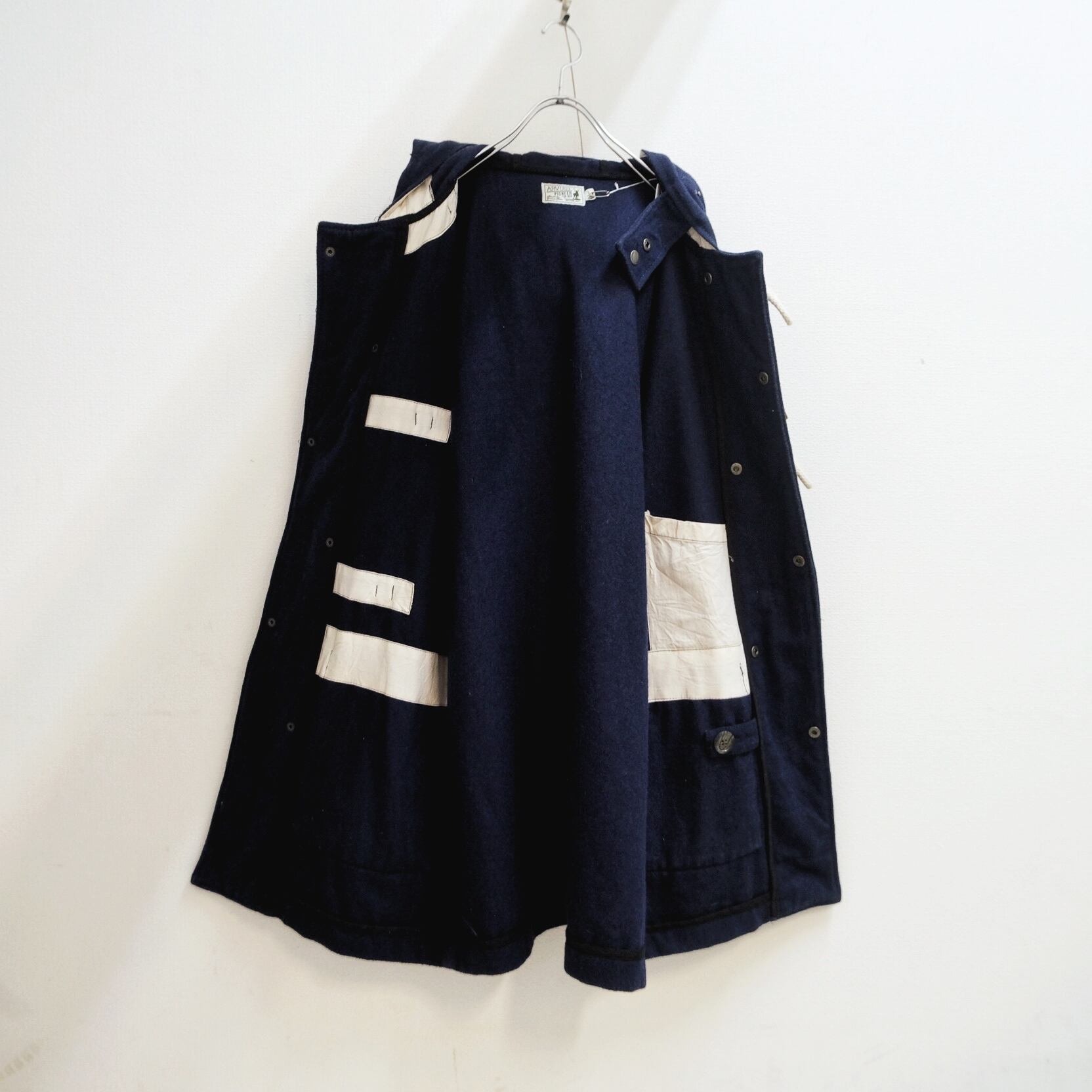 手を簡単に入れられる様にフラップは外し、大きめなハンドウォーマーポケットになっていたり、首元を温めるチンストラップがあったり、初期型のディテールが多く採用されています。