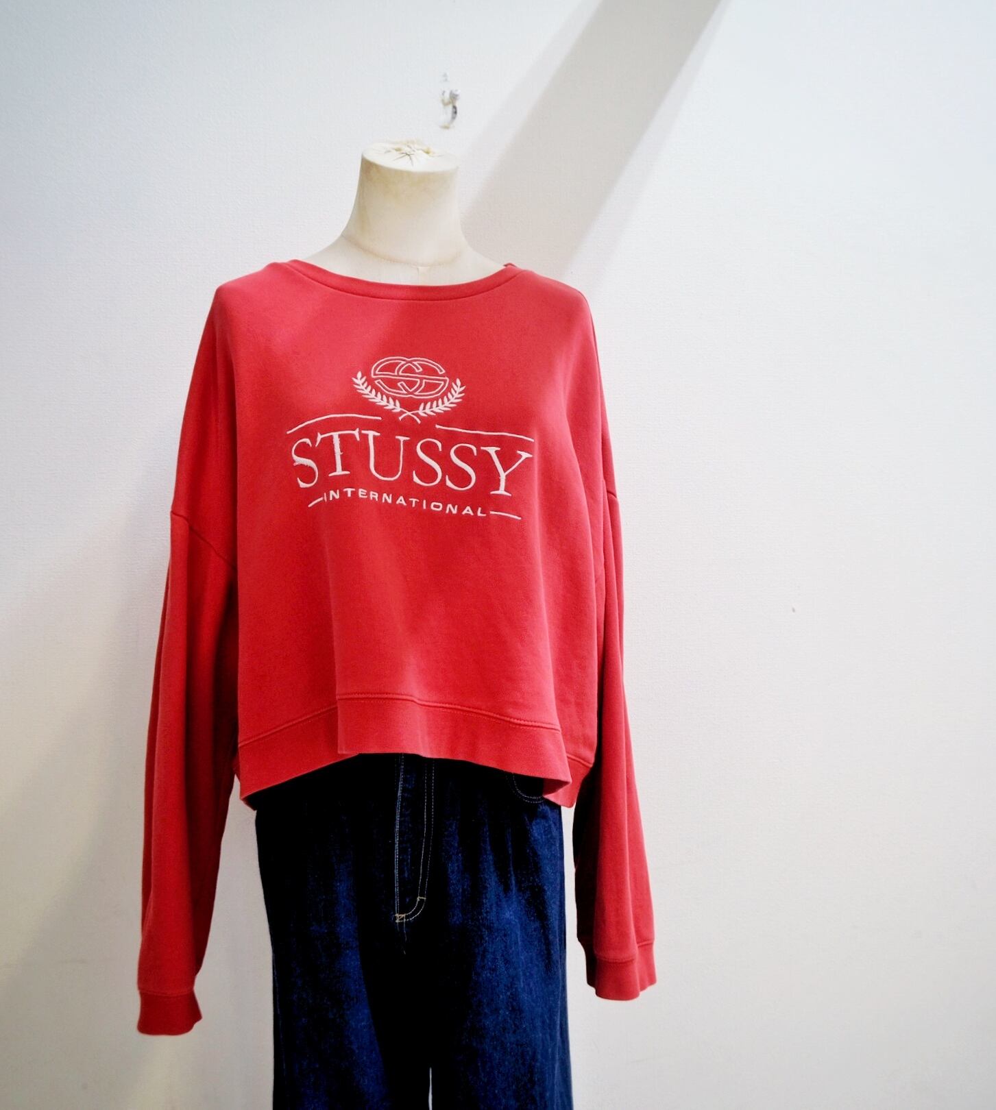 00‘s "STUSSY International" Embroidery Design Short Length Sweat Shirt