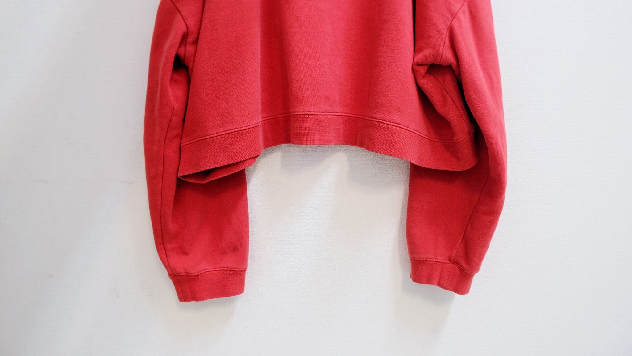 着丈は48㎝とかなり短めにとりつつ、身幅は70㎝オーバーと攻めたシルエットが魅力的。