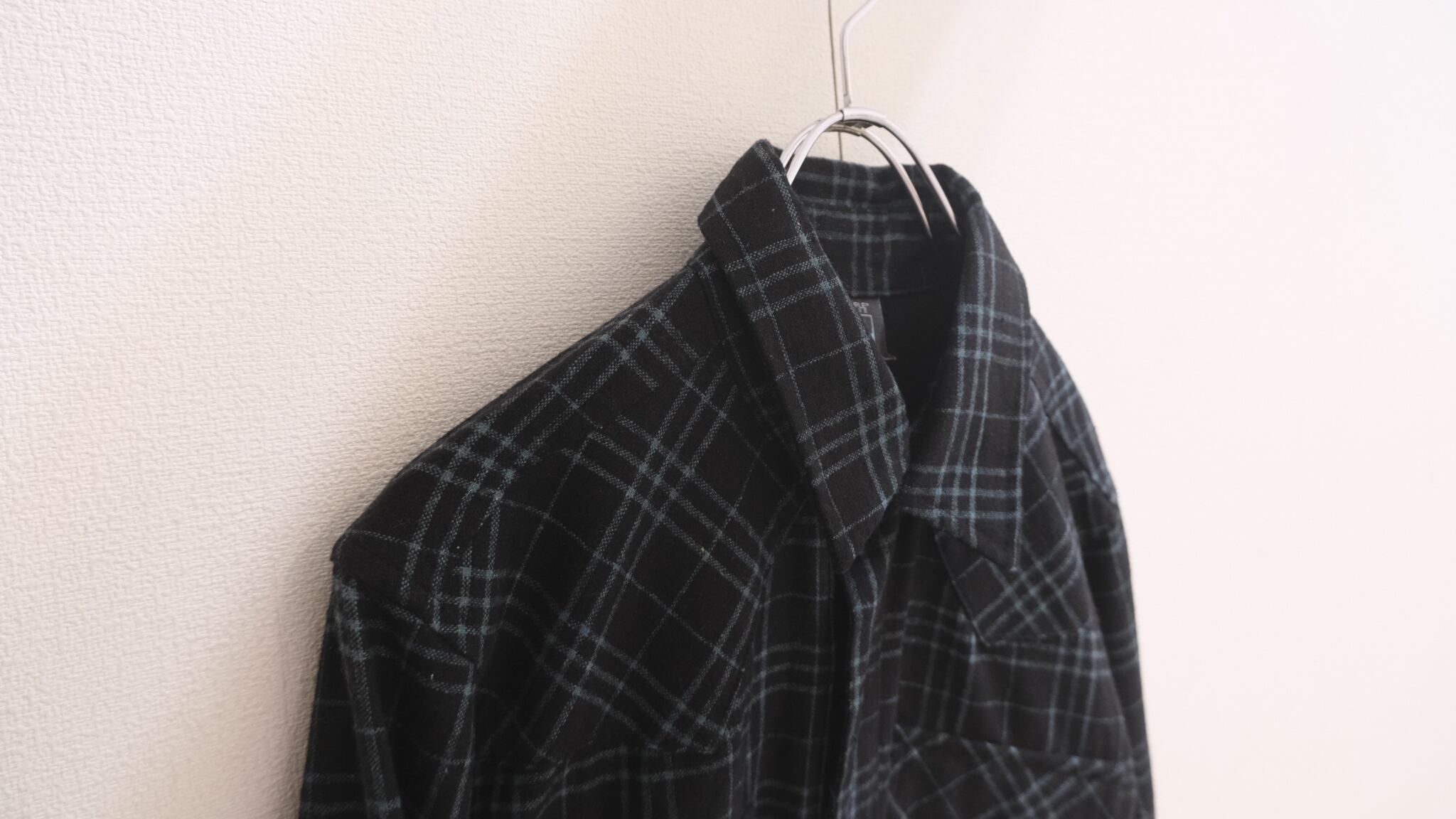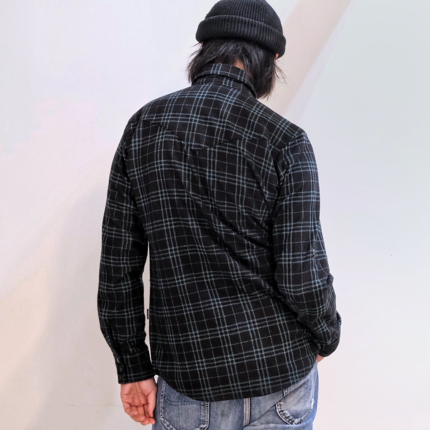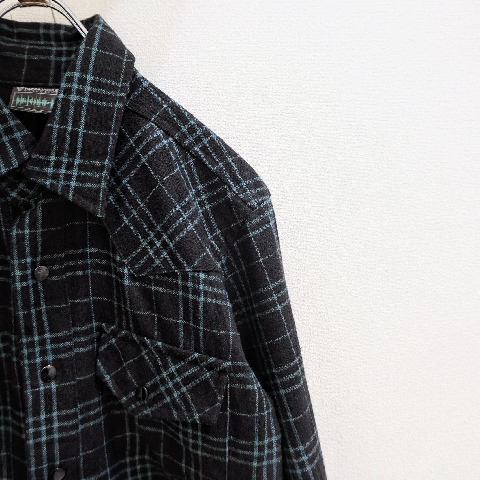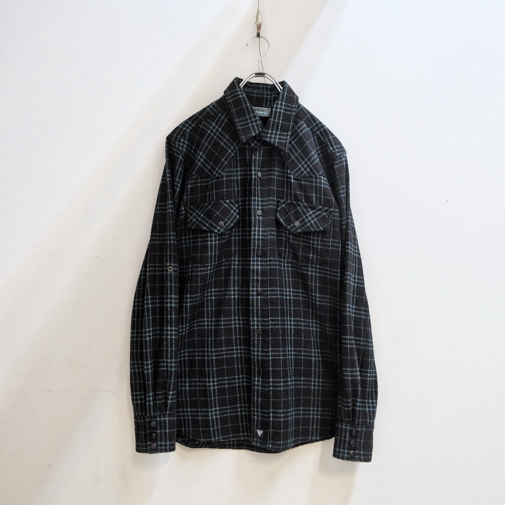 00's "PSGB Group" Tattersall Check Black Wool Shirt