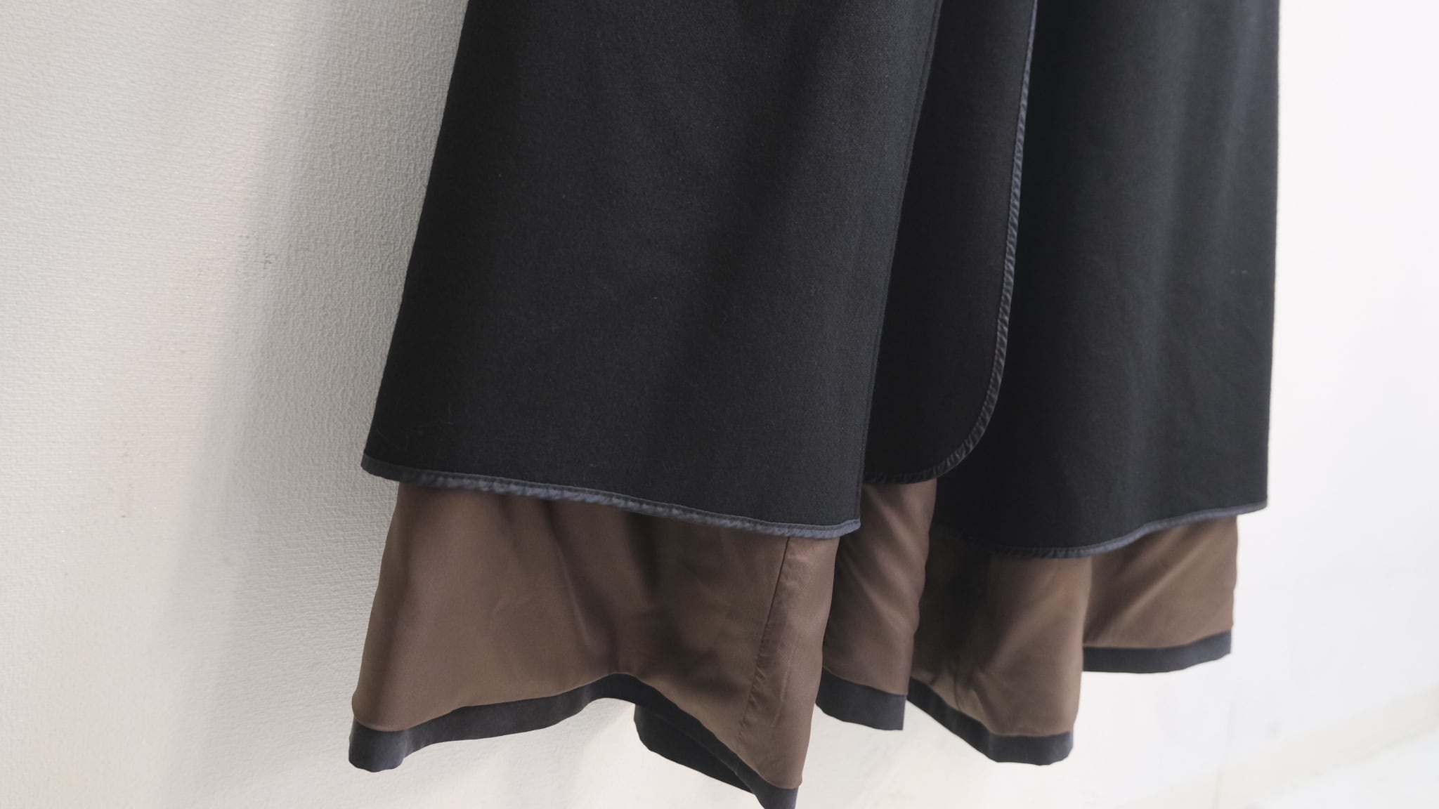 滑らかな極上のピーチスキンは流曲線を描きながらストンと綺麗に落ち、自然に生まれるドレープを含めた美シルエット。