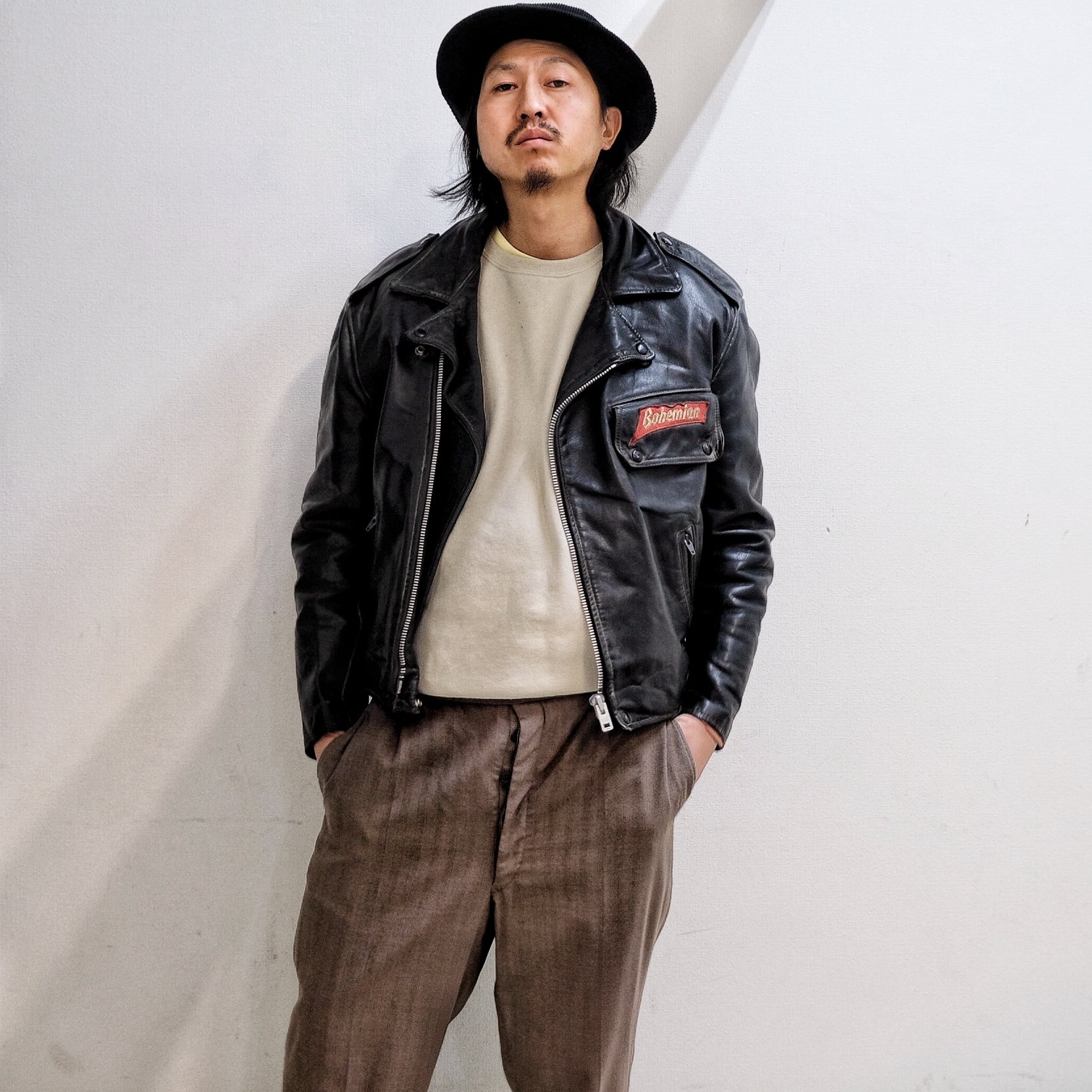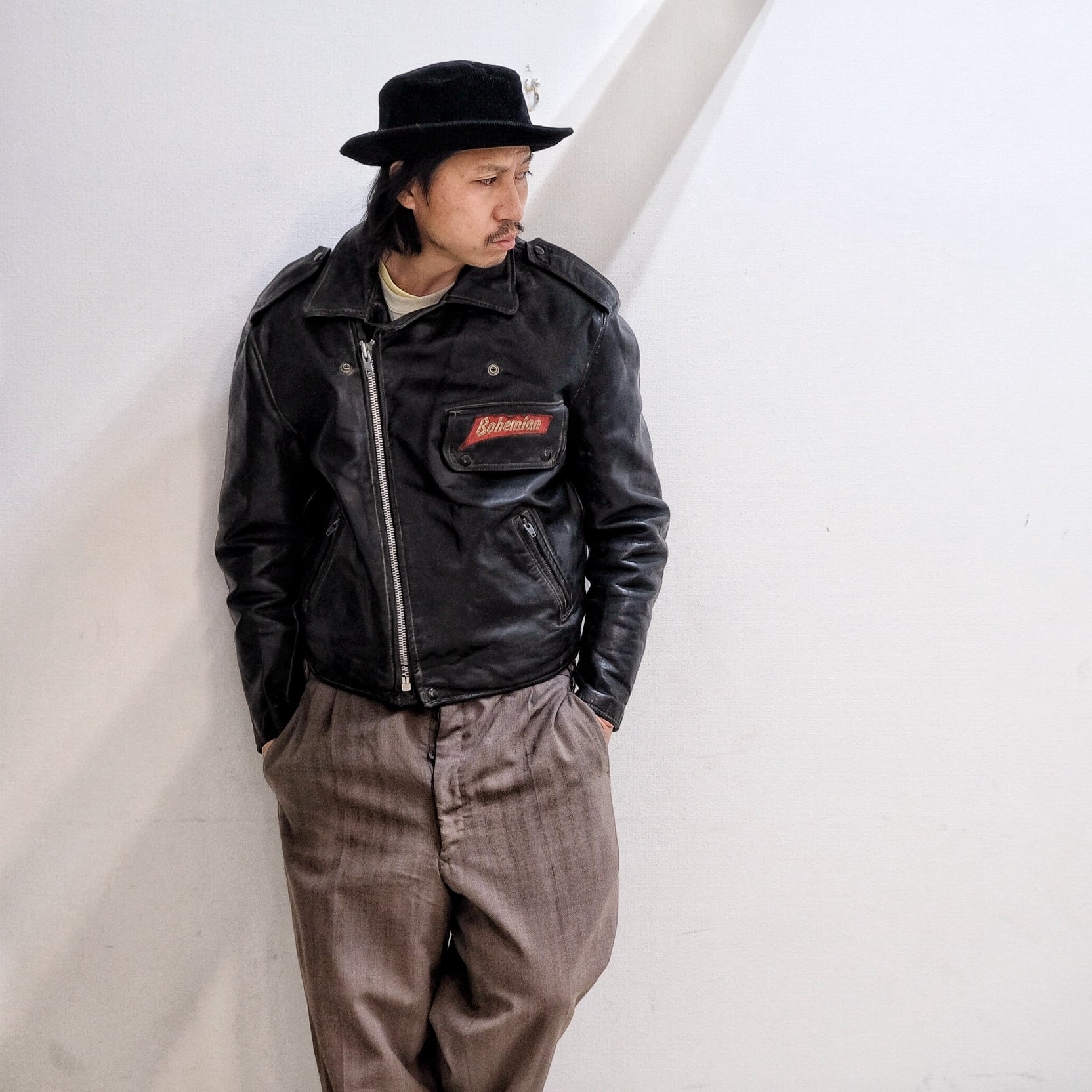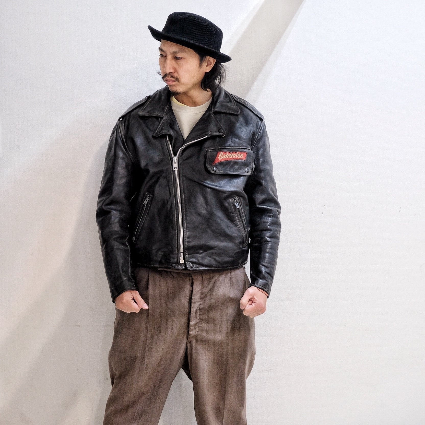 80‘s Vintage ”BOHEMIAN“ Genuine Leather Double Riders Jacket