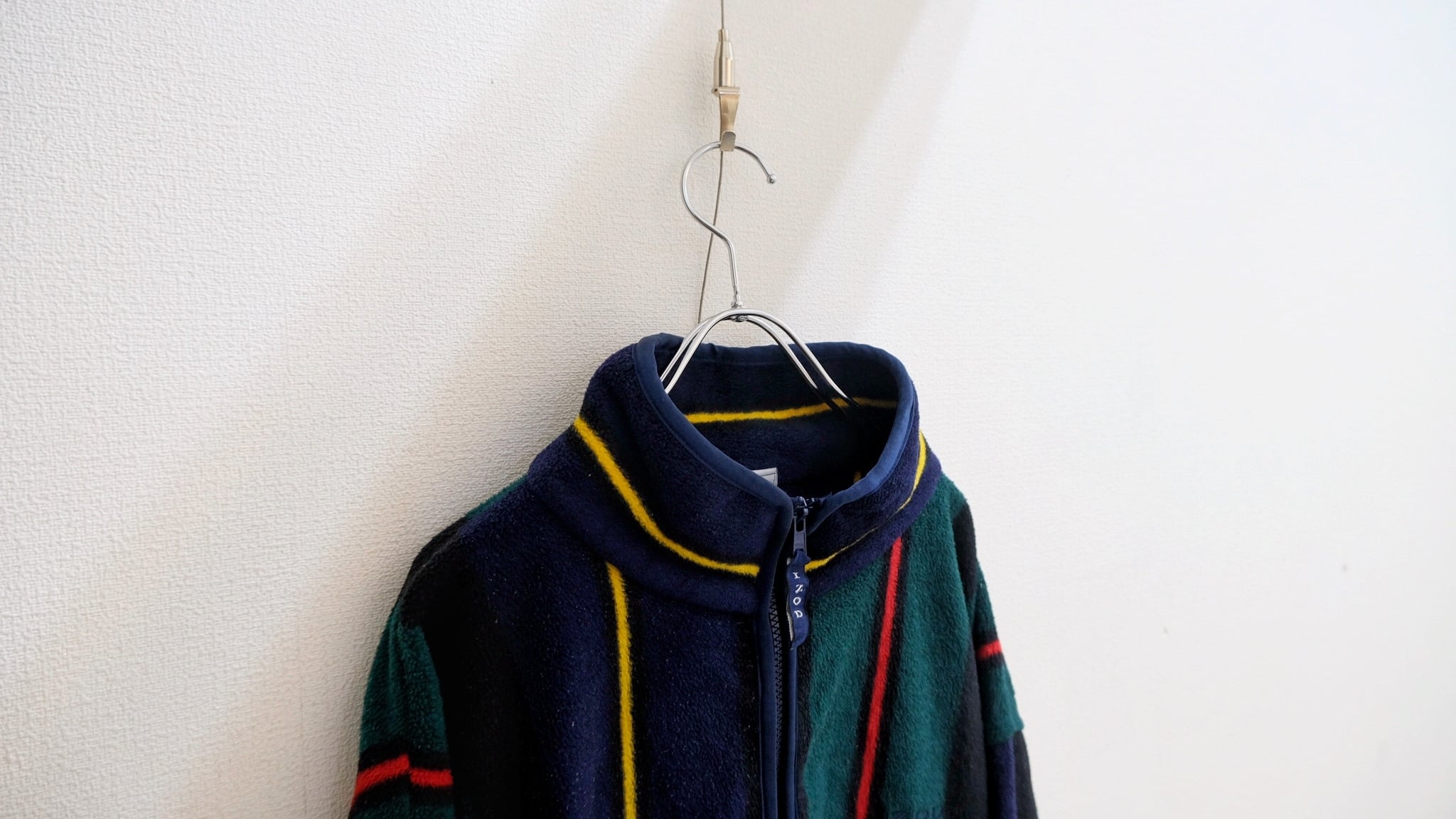 欧州を感じる様なマルチストライプのフリースジャケット。