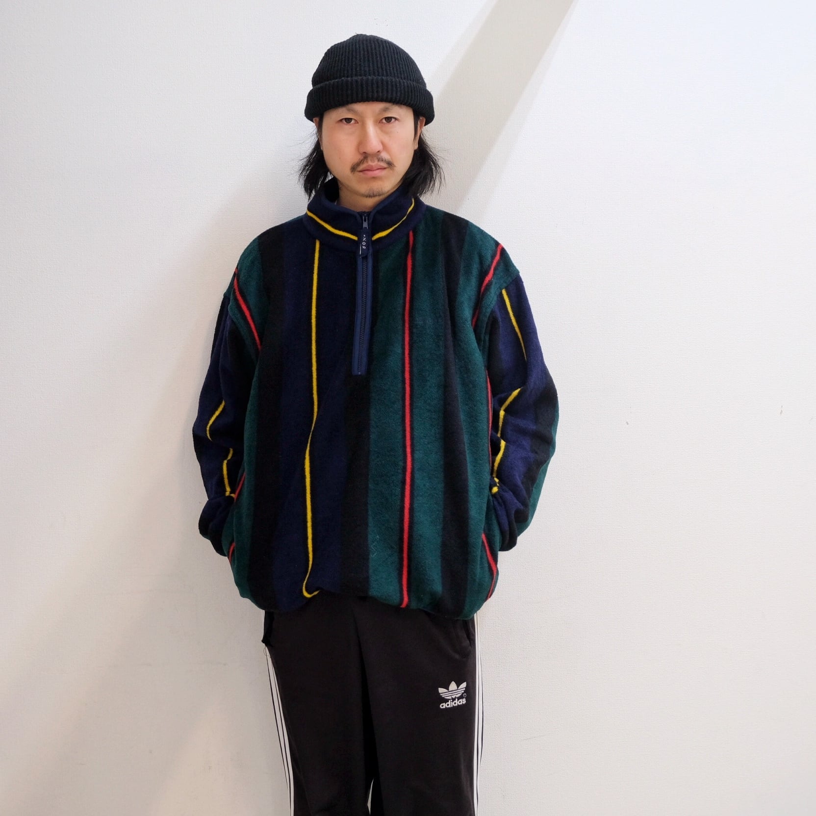 90's I ZOD Mulch Stripes Fleece Pullover Jacket Made in USA