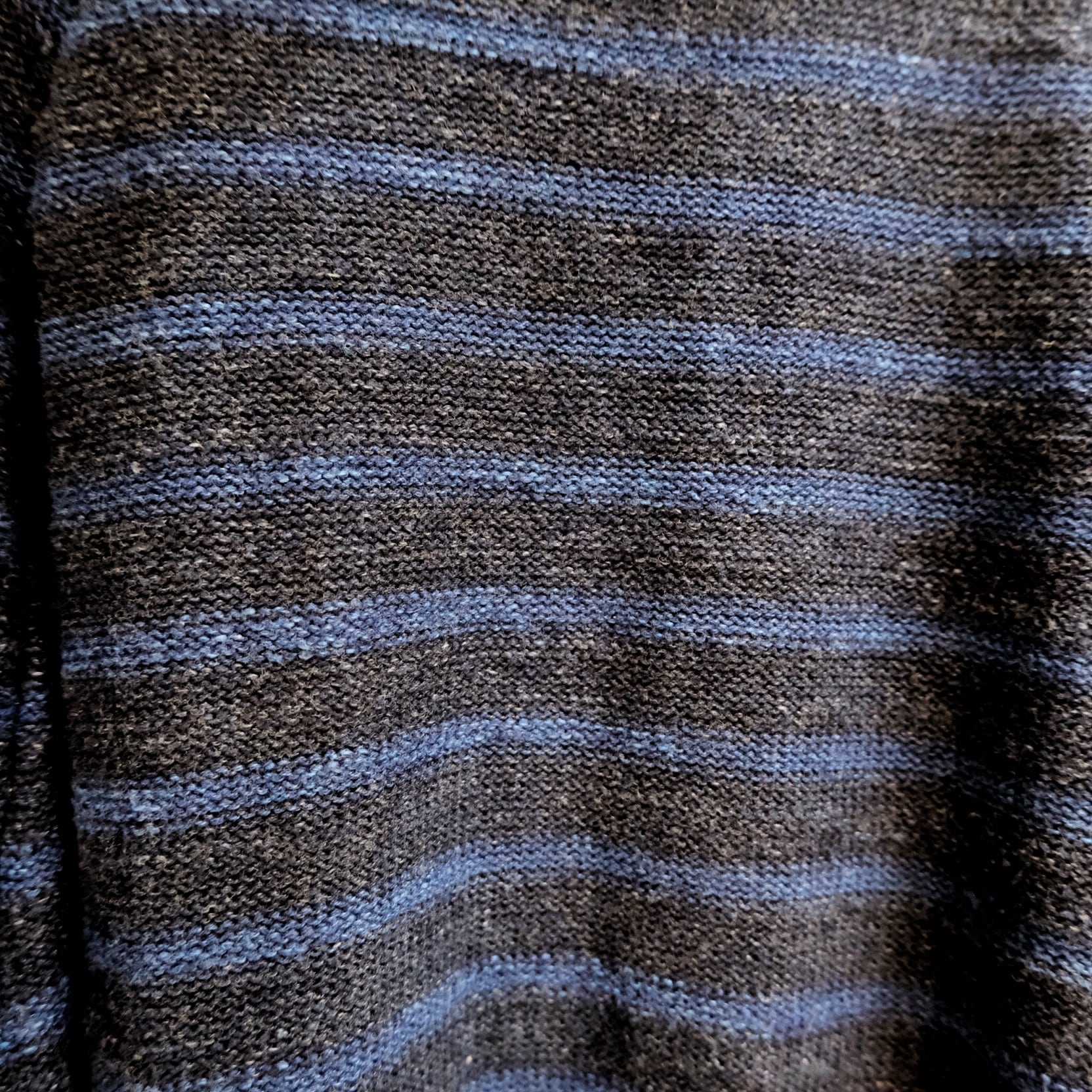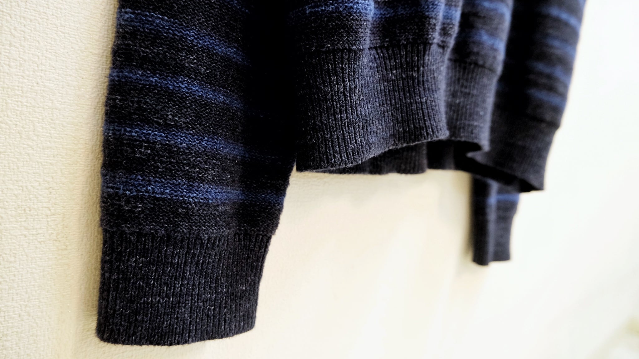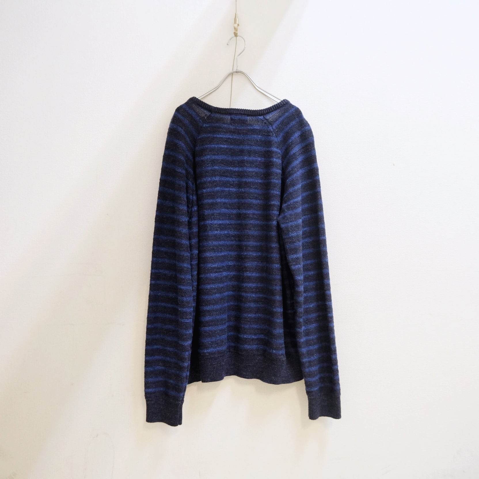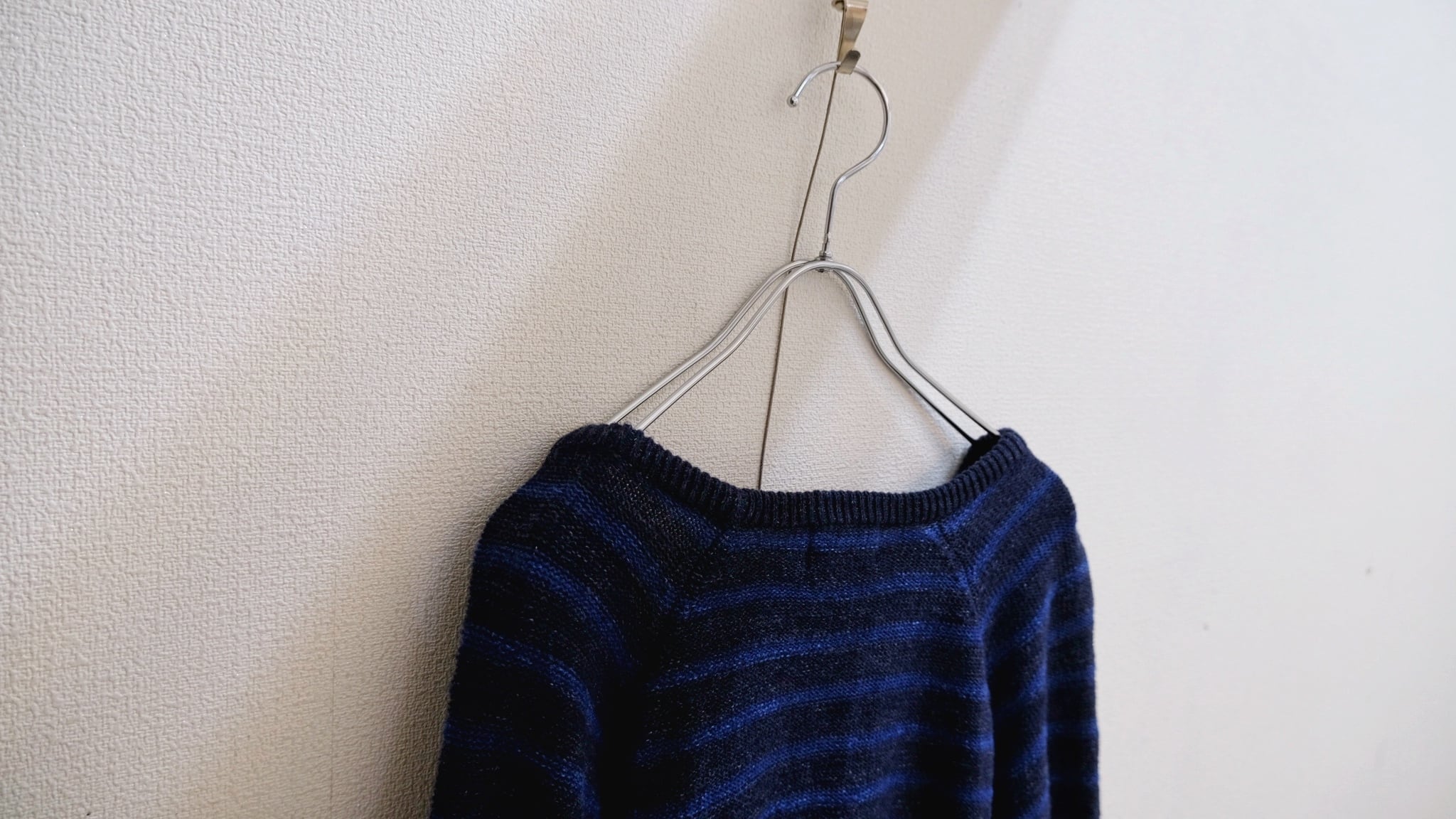 藍色をコントラストで色分けをしたボーダーニット。