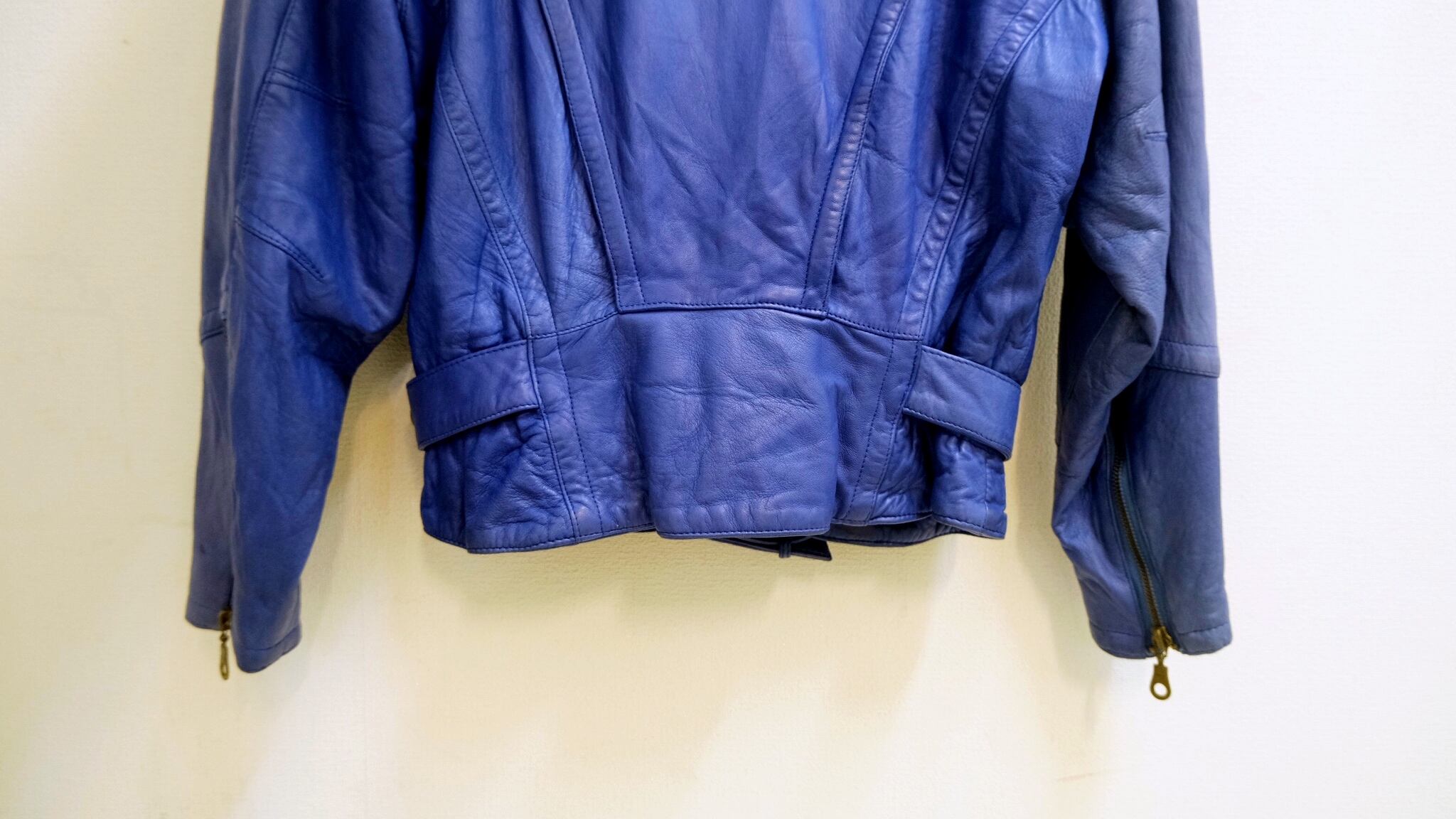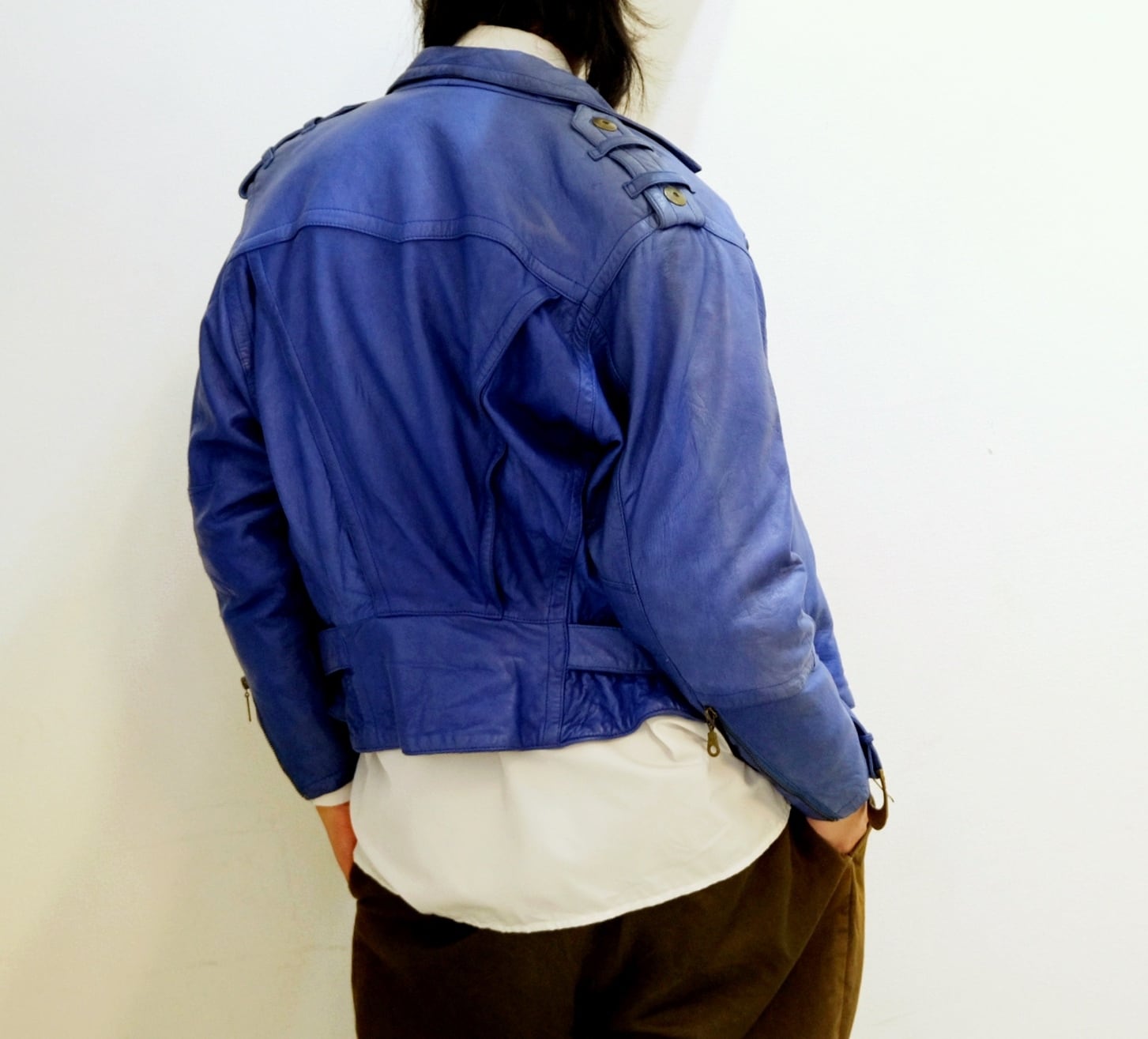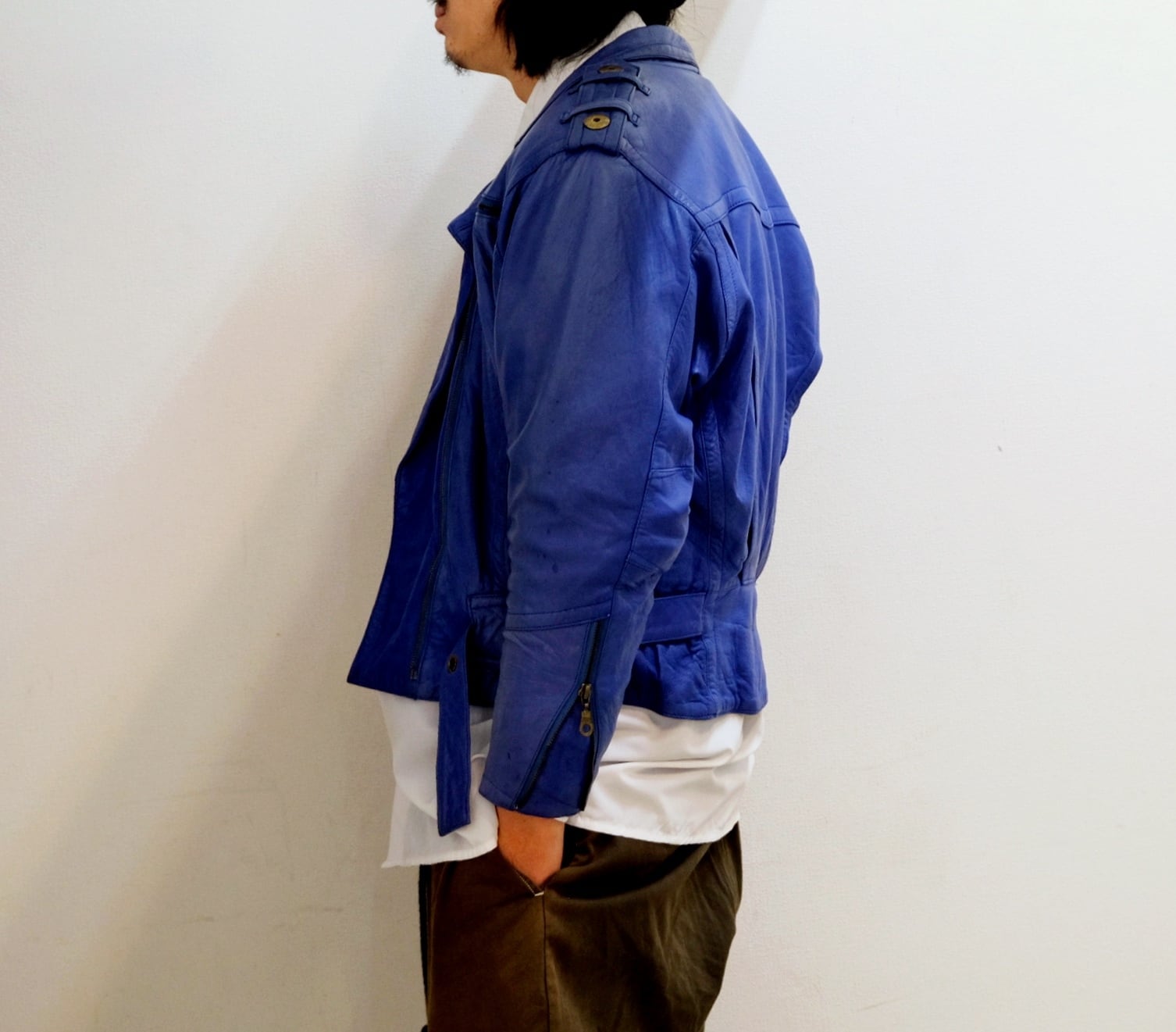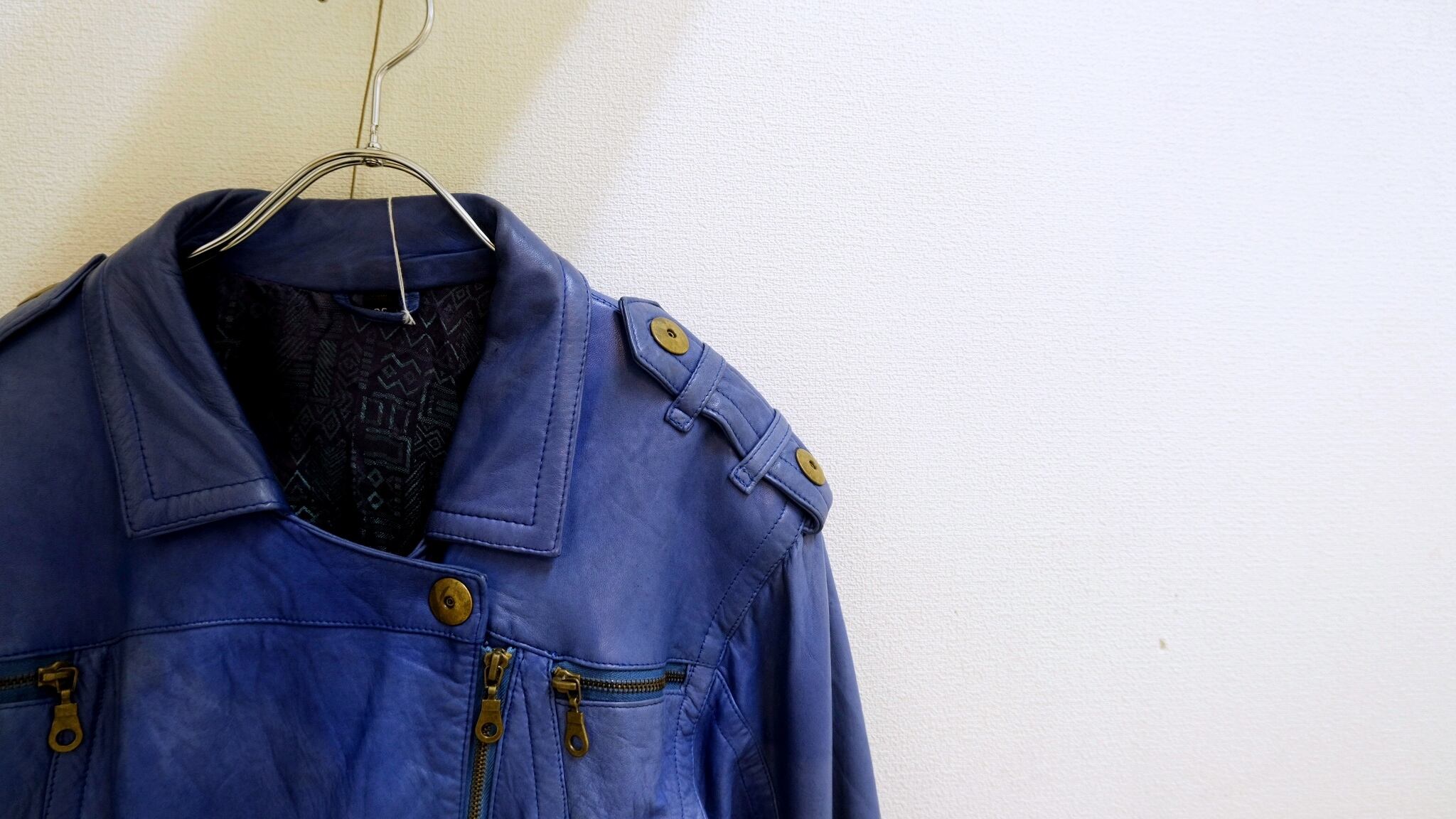 ラピスラズリの様な鮮やかで深い青が特徴的なレザージャケット。
