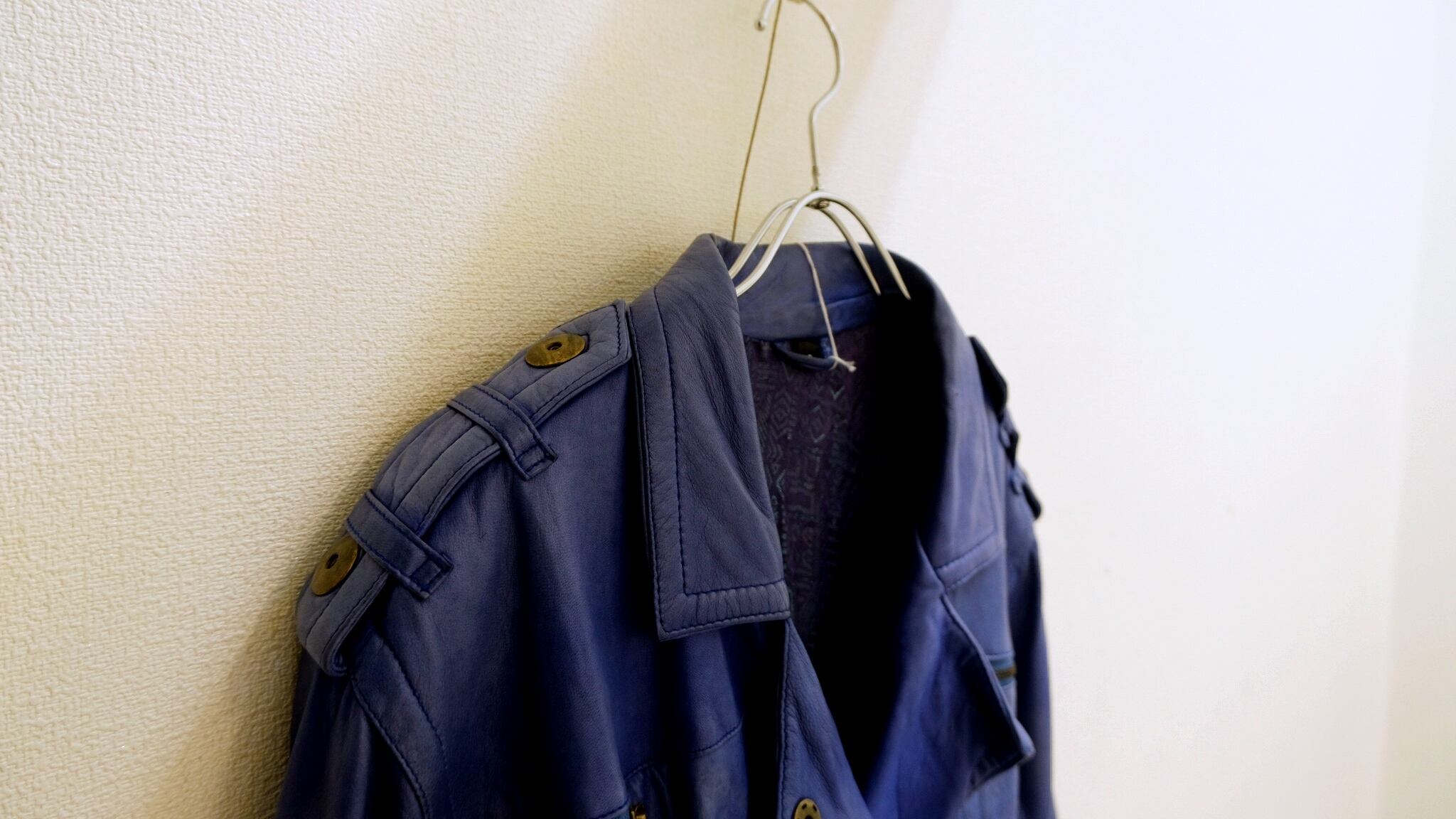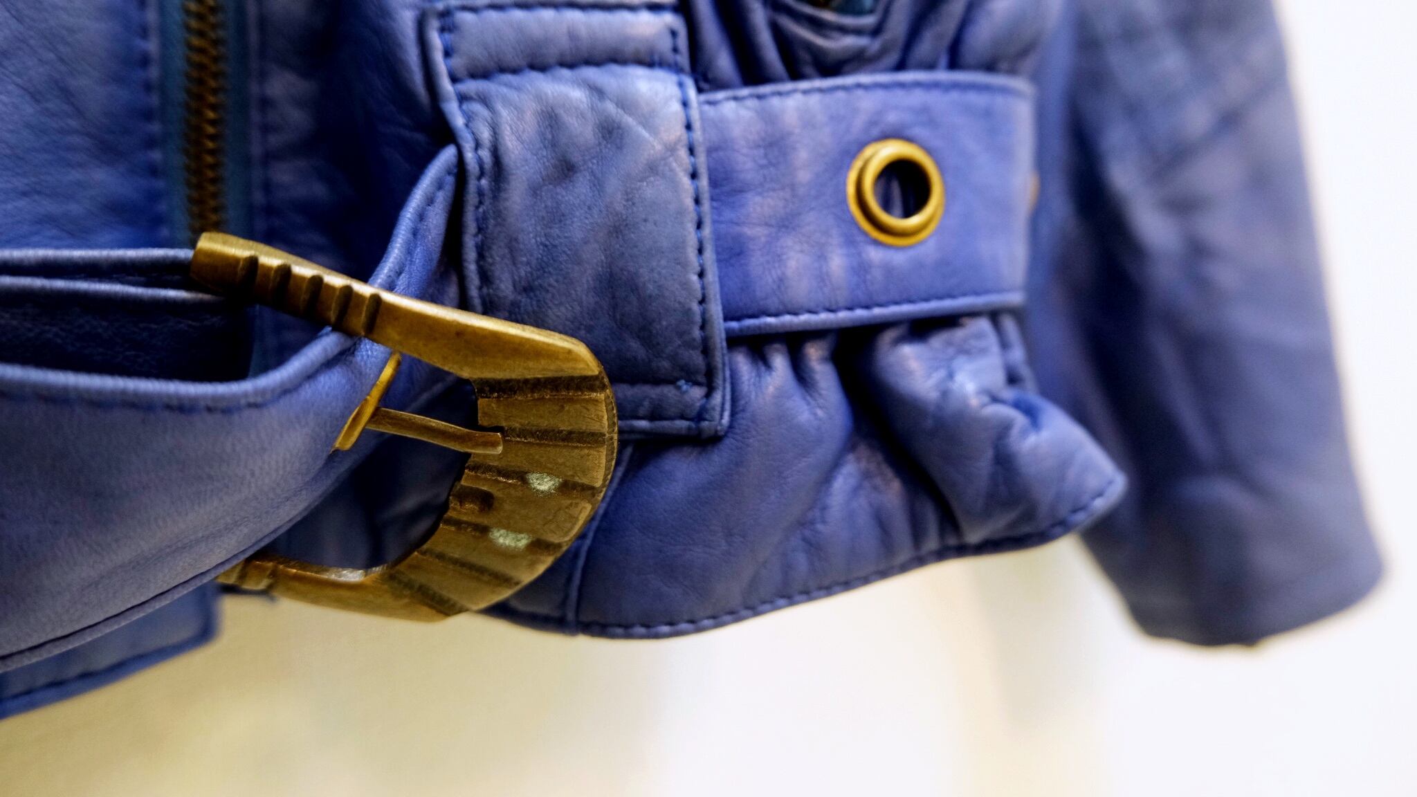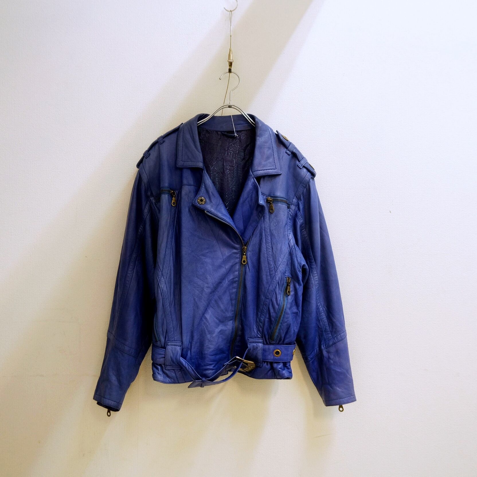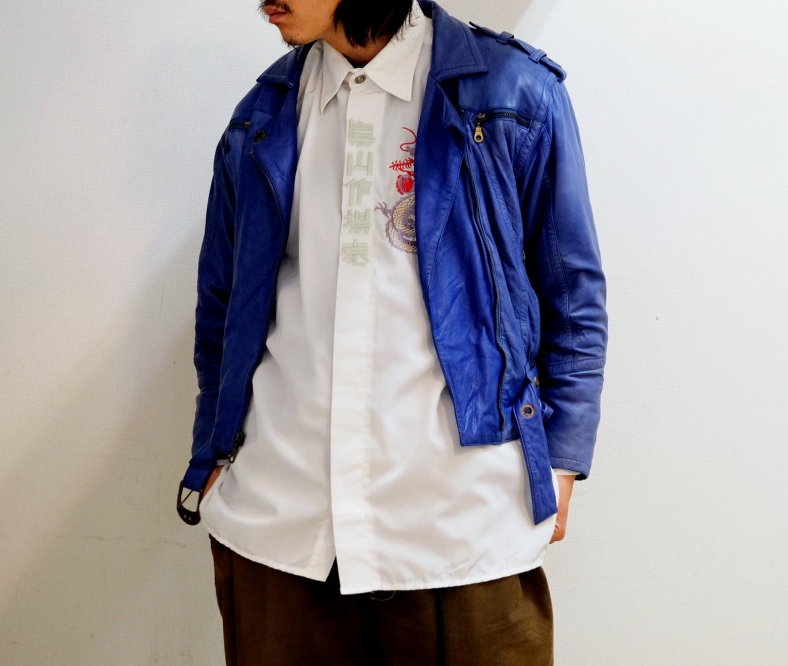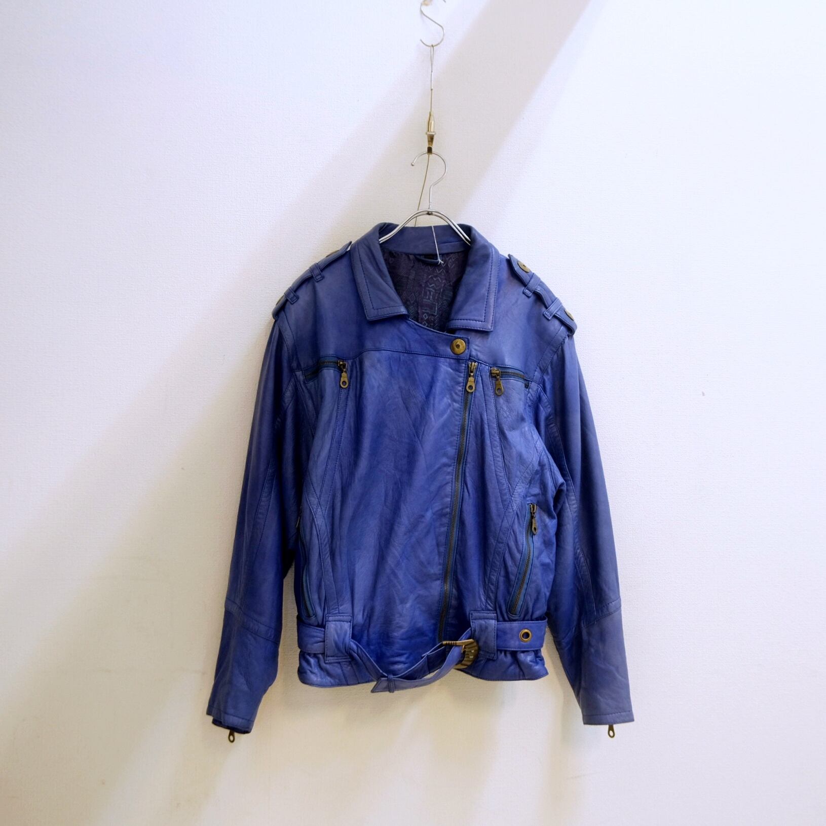 ラピスラズリの様な鮮やかで深い青が特徴的なレザージャケット。