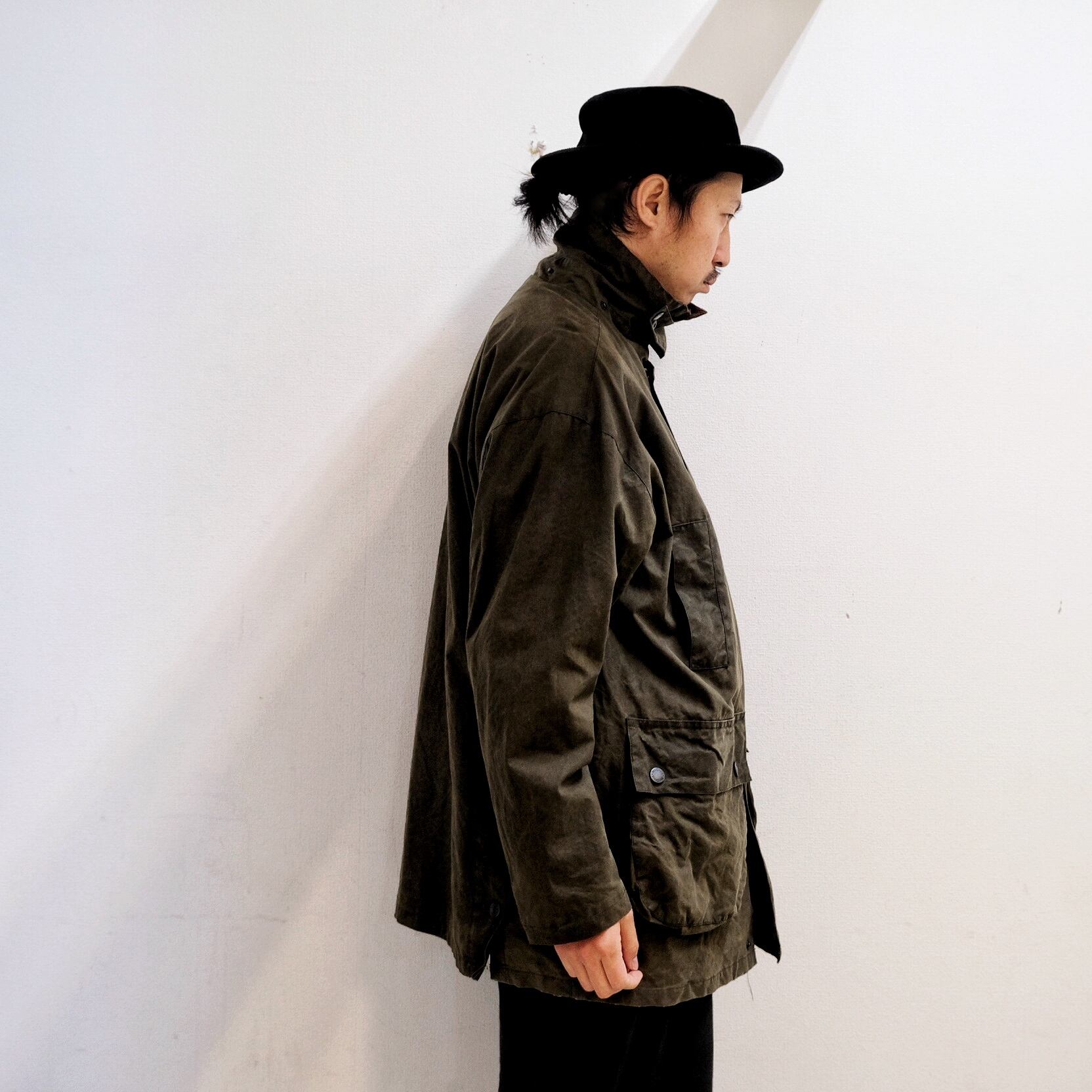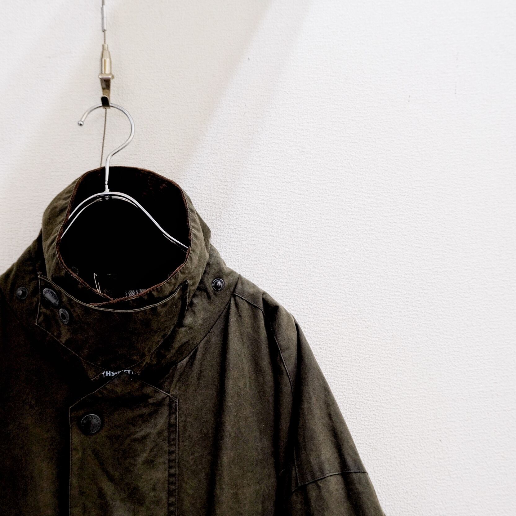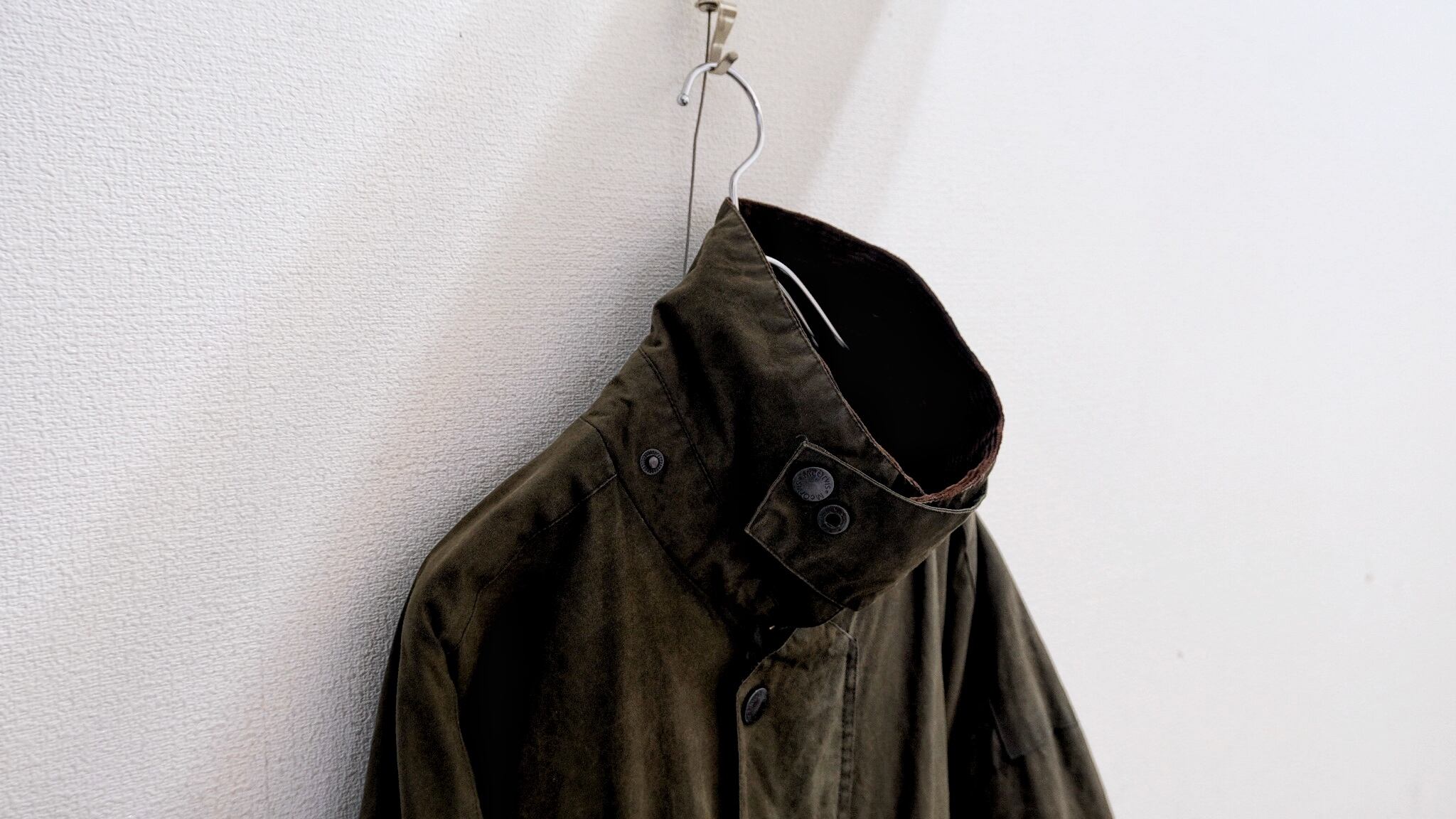 象徴であるオイルドコットンをはじめ、首元からの風の侵入を防ぐ、チンストラップ、しゃがんだり、座る際に広げてストレスを与えない裾にあるインバーテッドプリーツとタウンユースにも十二分に発揮できる機能的なディテール。