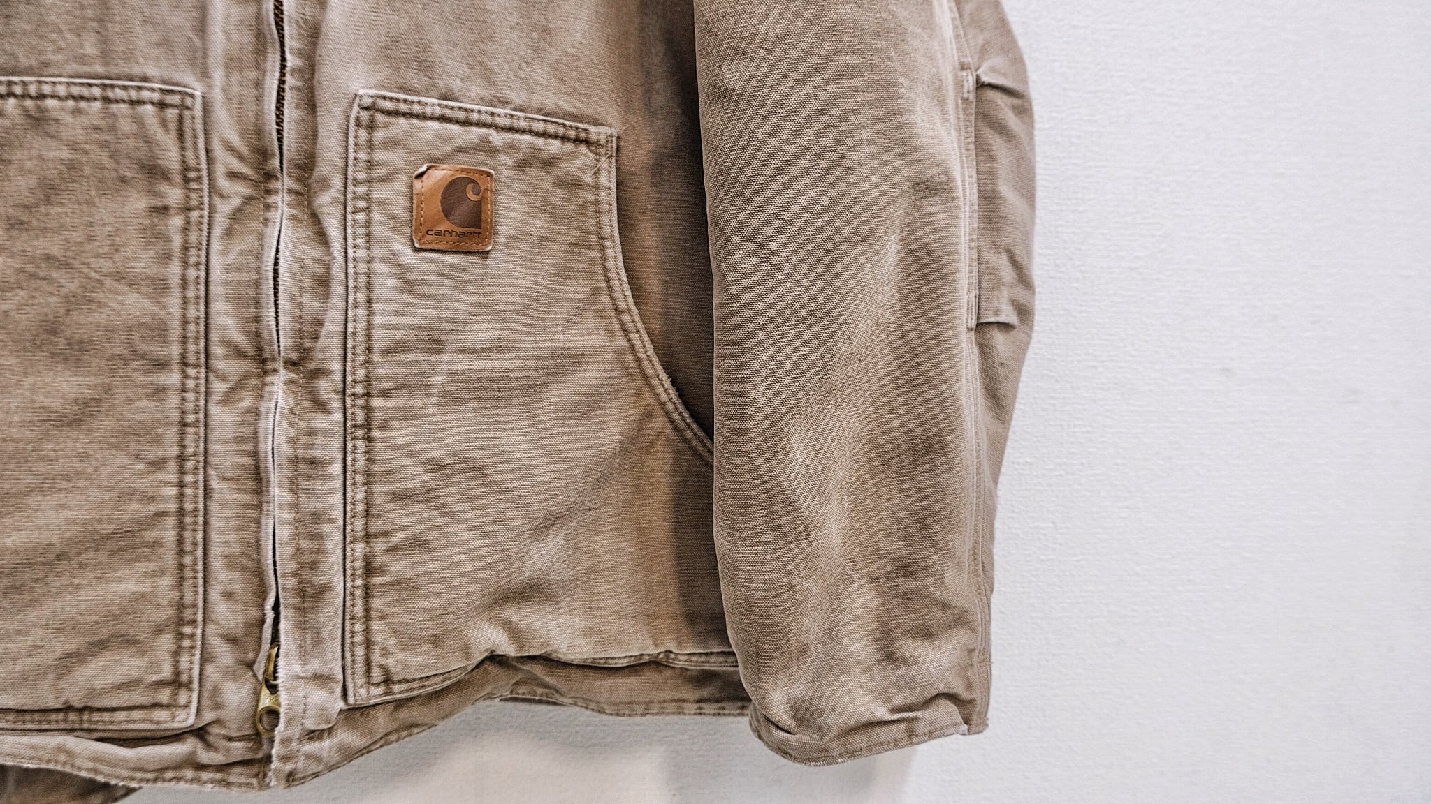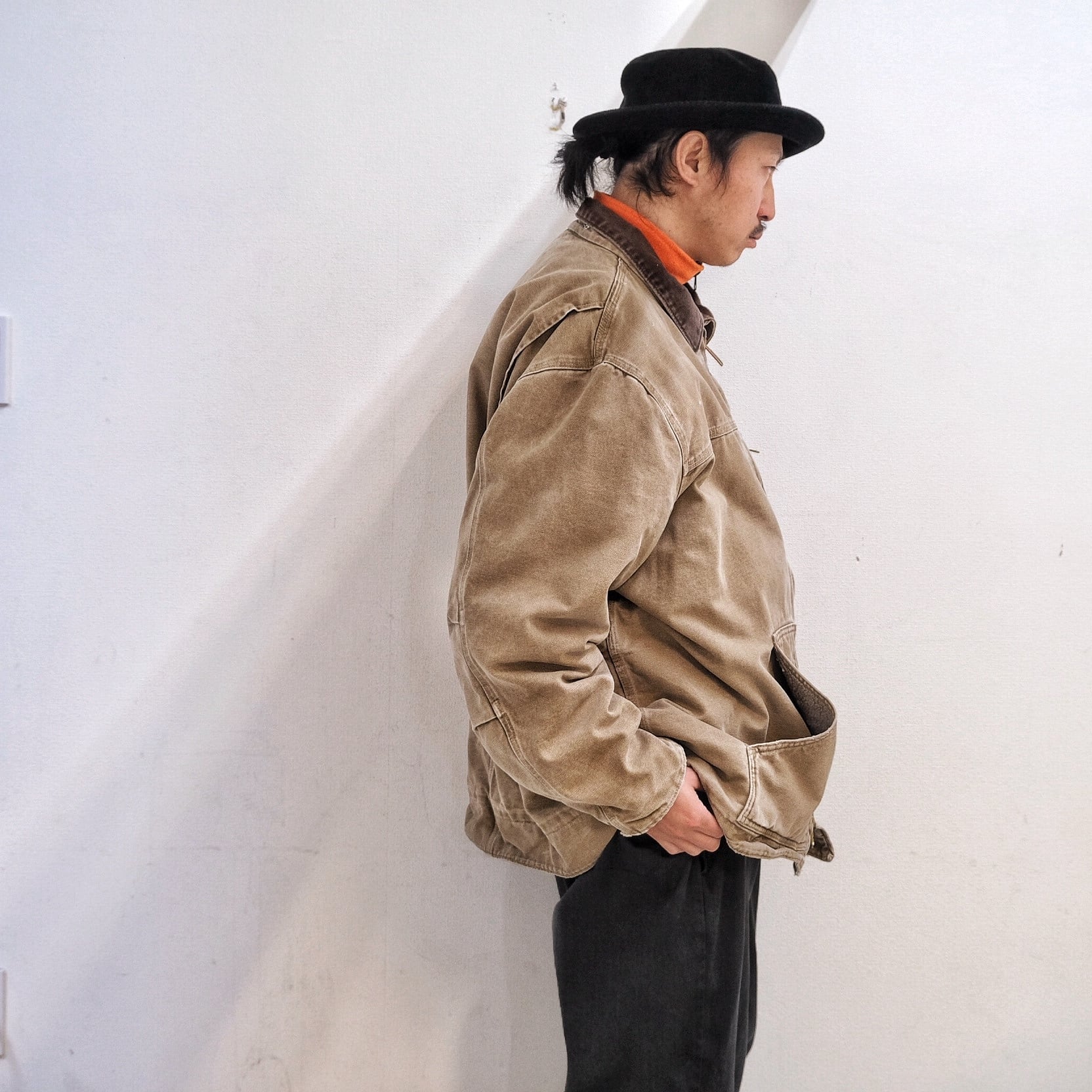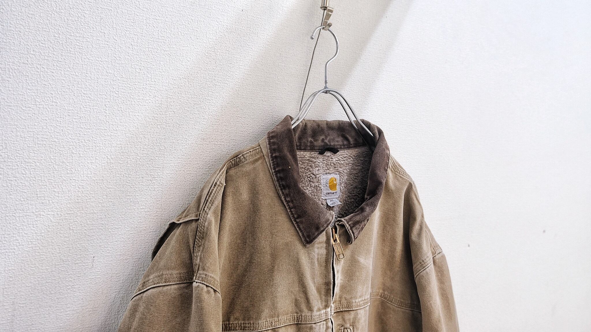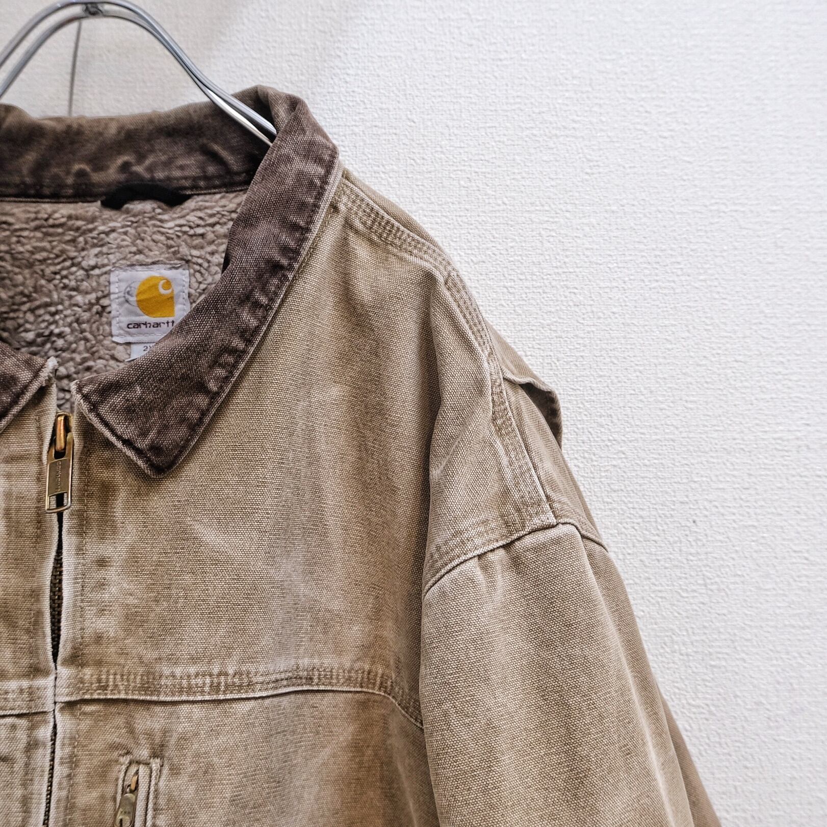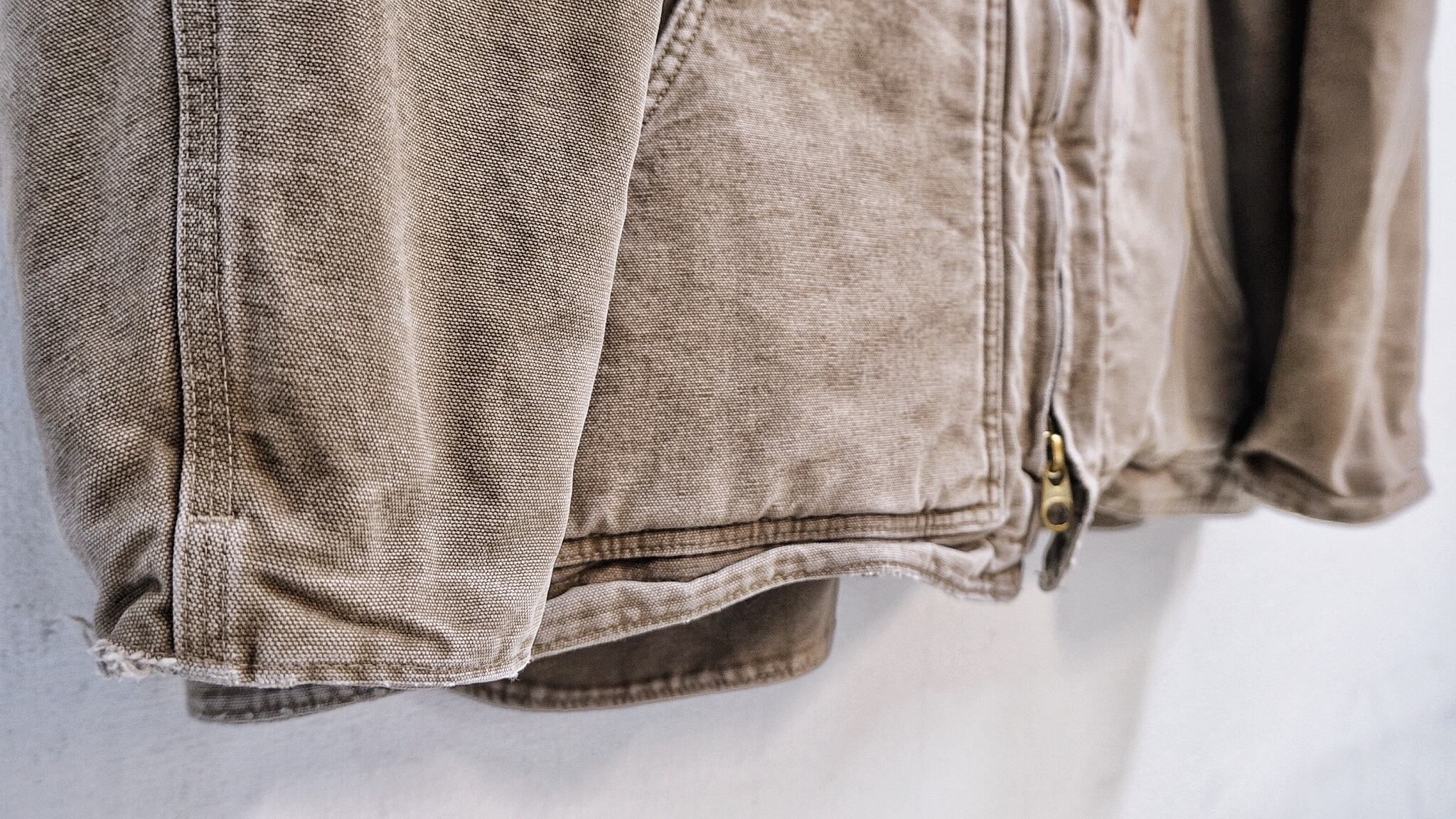 アタリが出てきていて、ヴィンテージらしい雰囲気が全面に醸し出されているカーハートのトラディショナルジャケット。