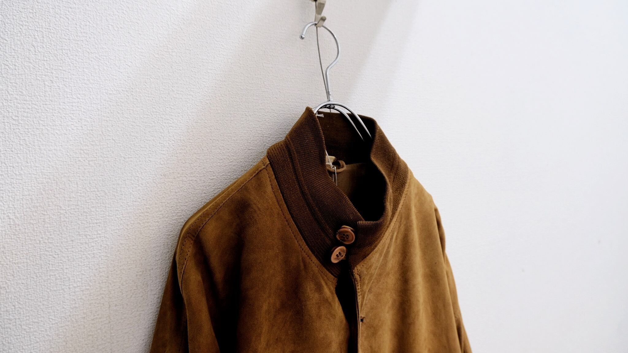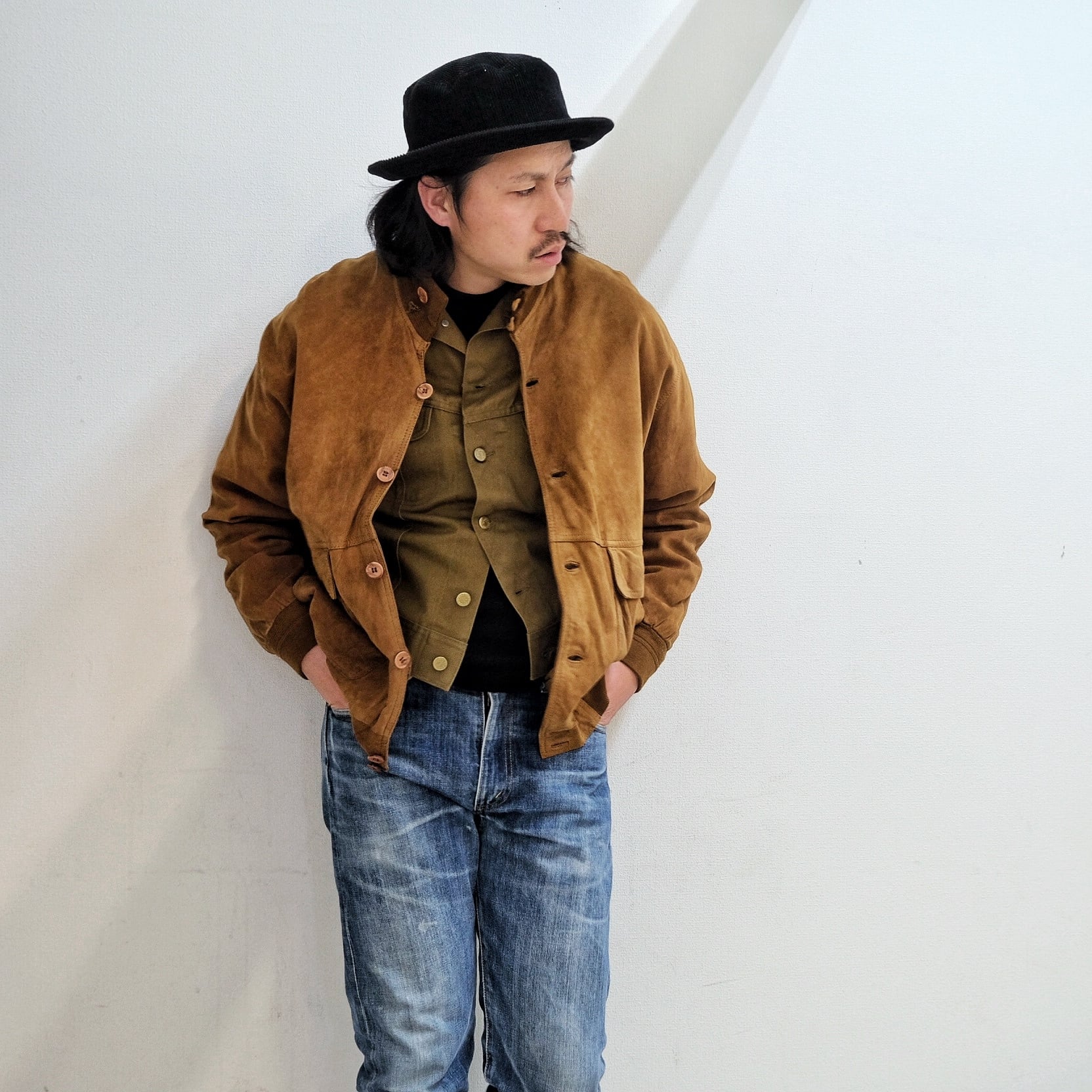 ミリタリー出身とスエードという土臭さがありつつも上品なシルエット、理にかなったディテールが洗練された印象を与えてくれる。