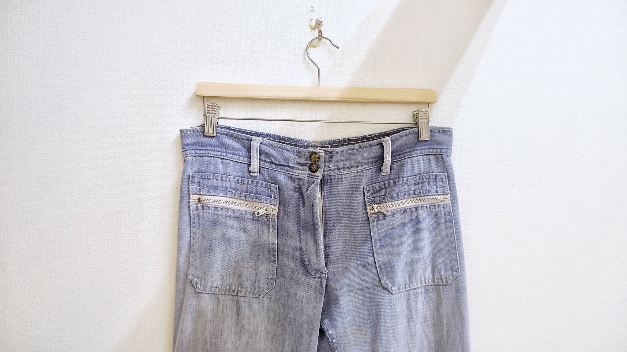滝の様な綺麗なアタリに小さなホツレと漂白飛び。薄ピンクのステッチととにかく、雰囲気からしてめちゃくちゃ良いんですよ。