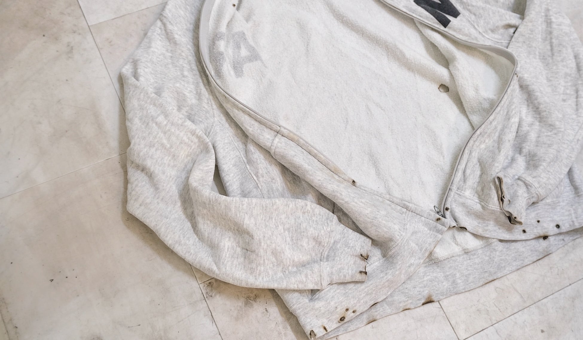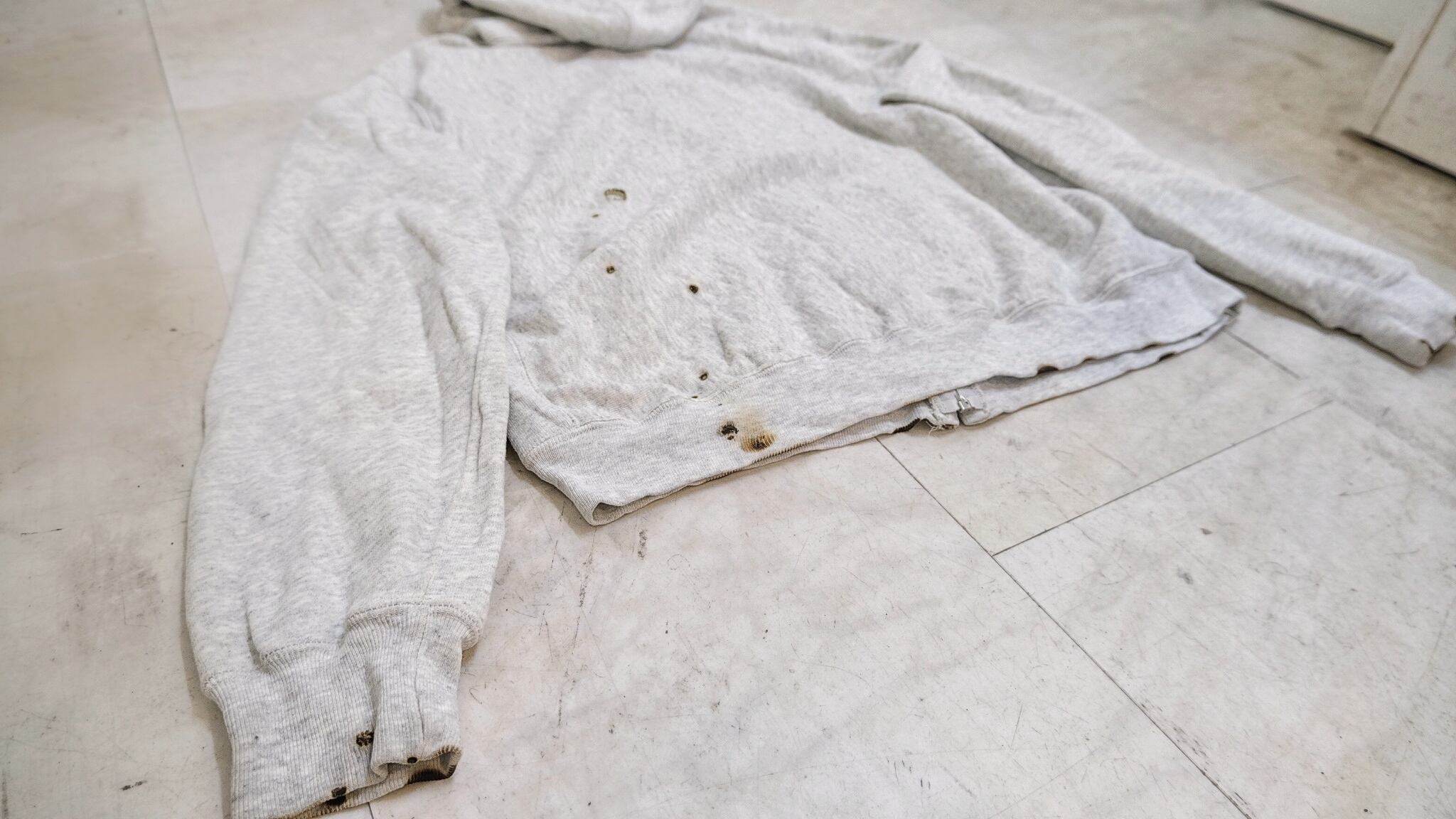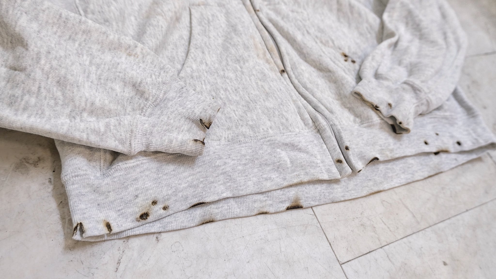 燃やす事でデザインを施した狂気じみたジップアップパーカー。