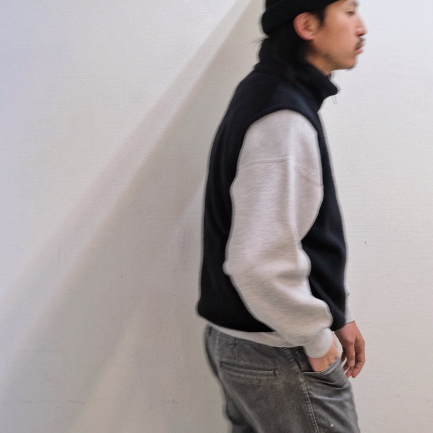 昼間はスウェットの上からさらりと羽織ったりと気温によって使い分けれるマルチなベスト。