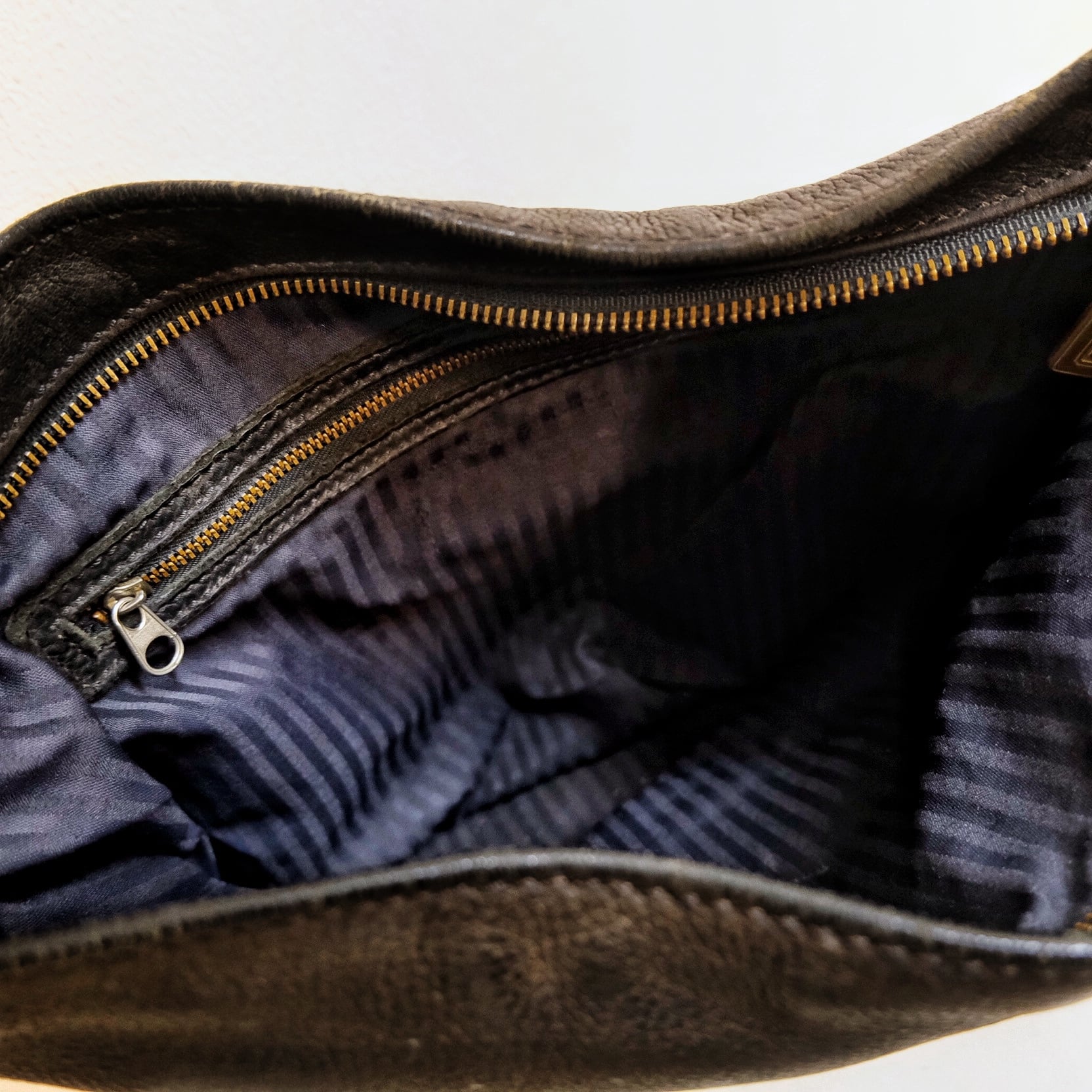 床革が剥き出しのも良いですが、ストライプの裏地は一段上に品格を魅せるバッグとなっております。