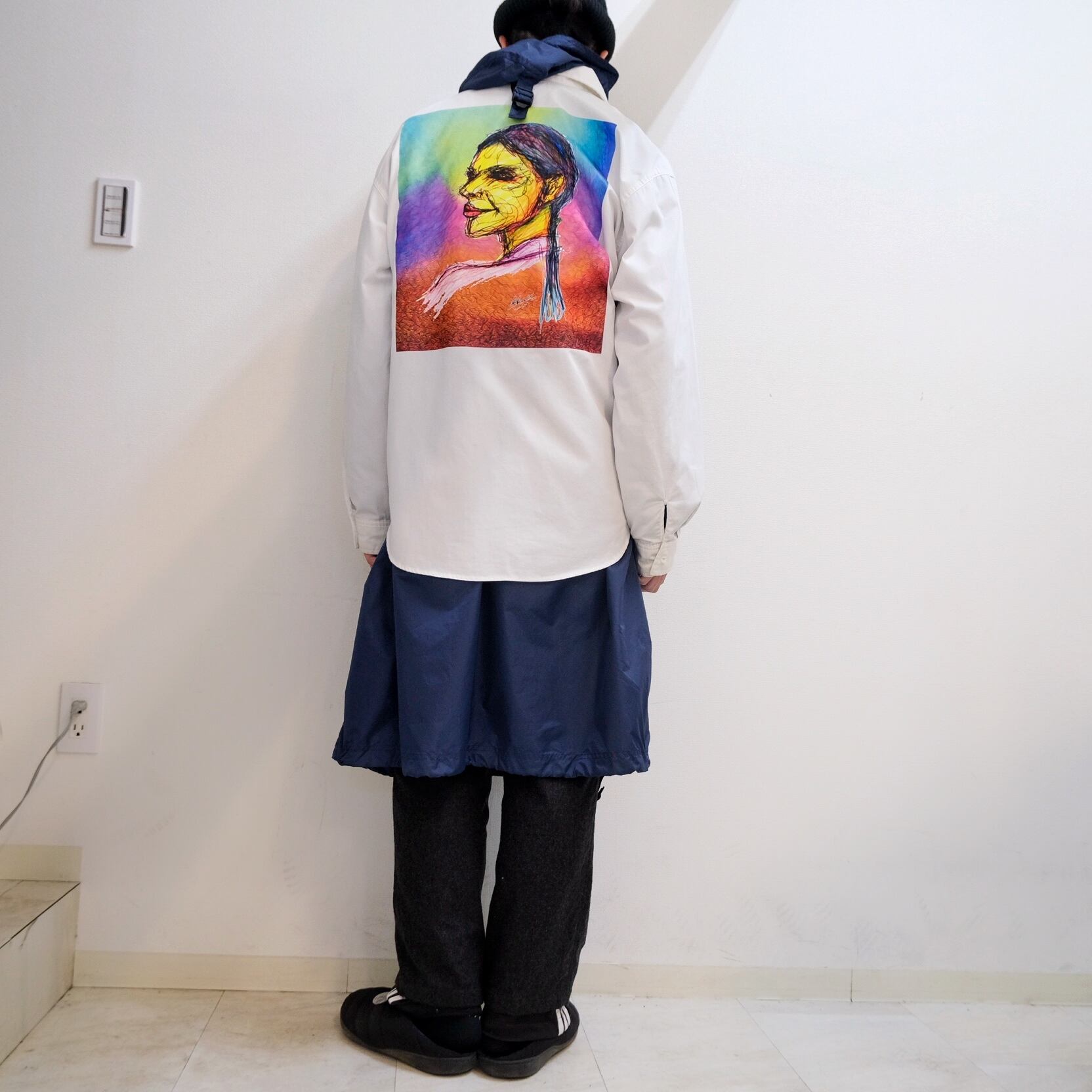 ロングの丈を四方向でボタン留めをしてショート丈にする考え。