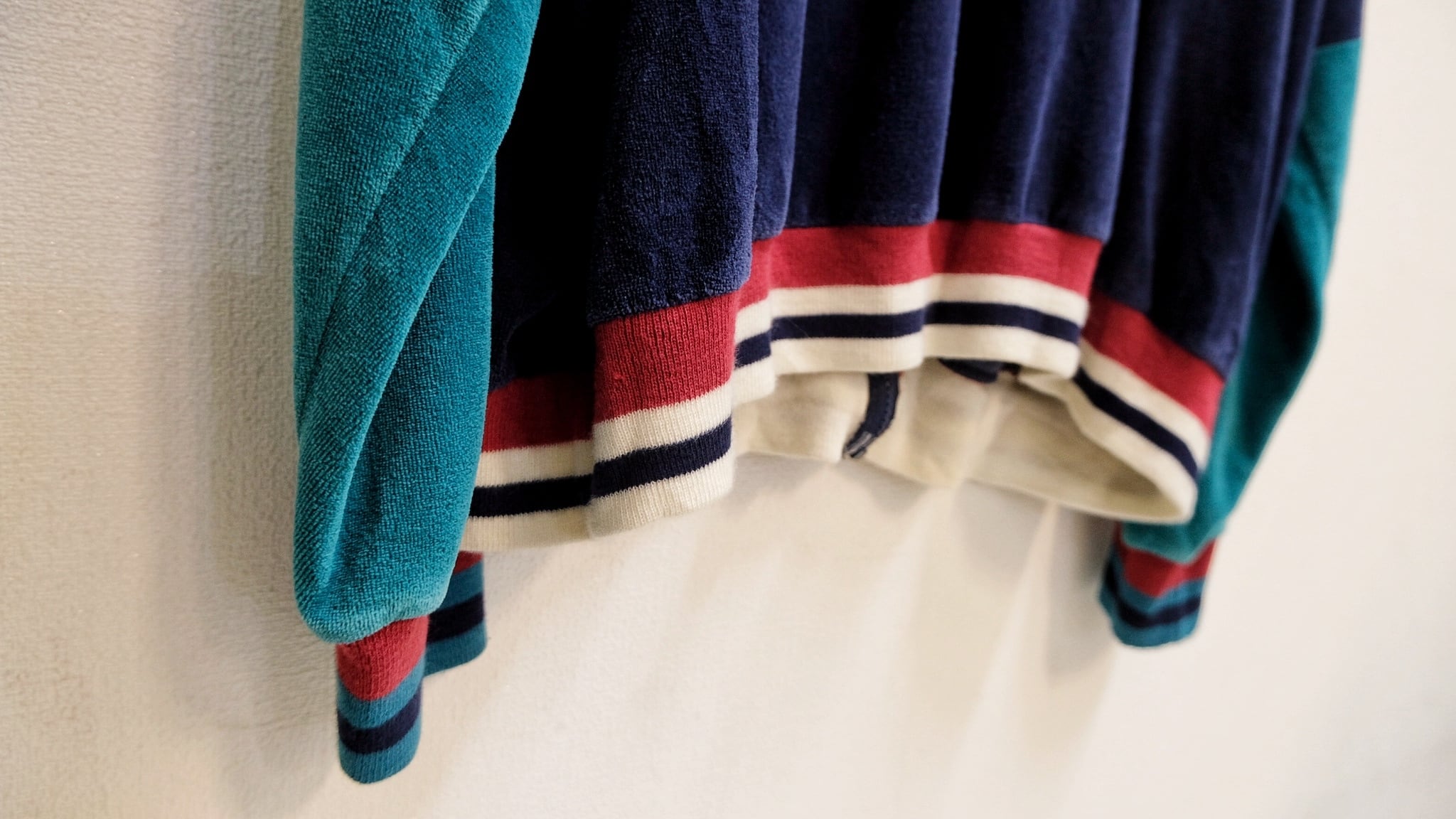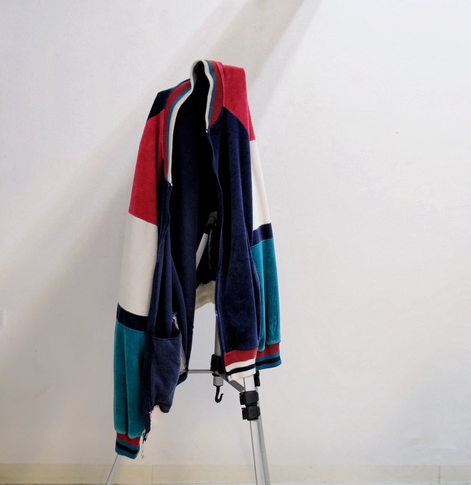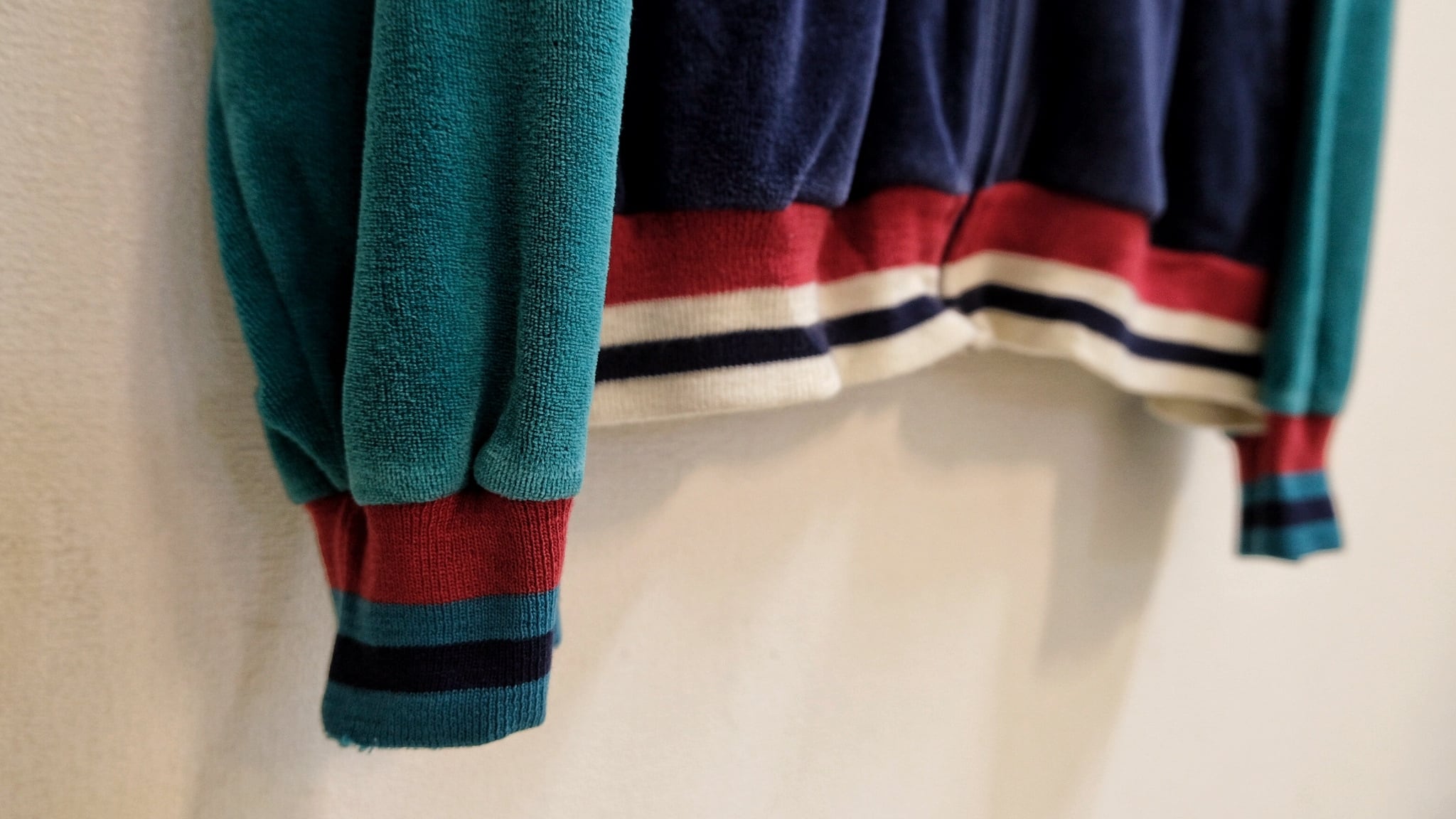 80年代ブームであったトリコカラーをベロアで高級感を演出し、