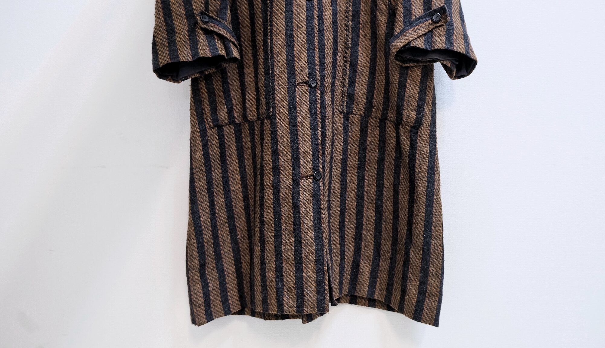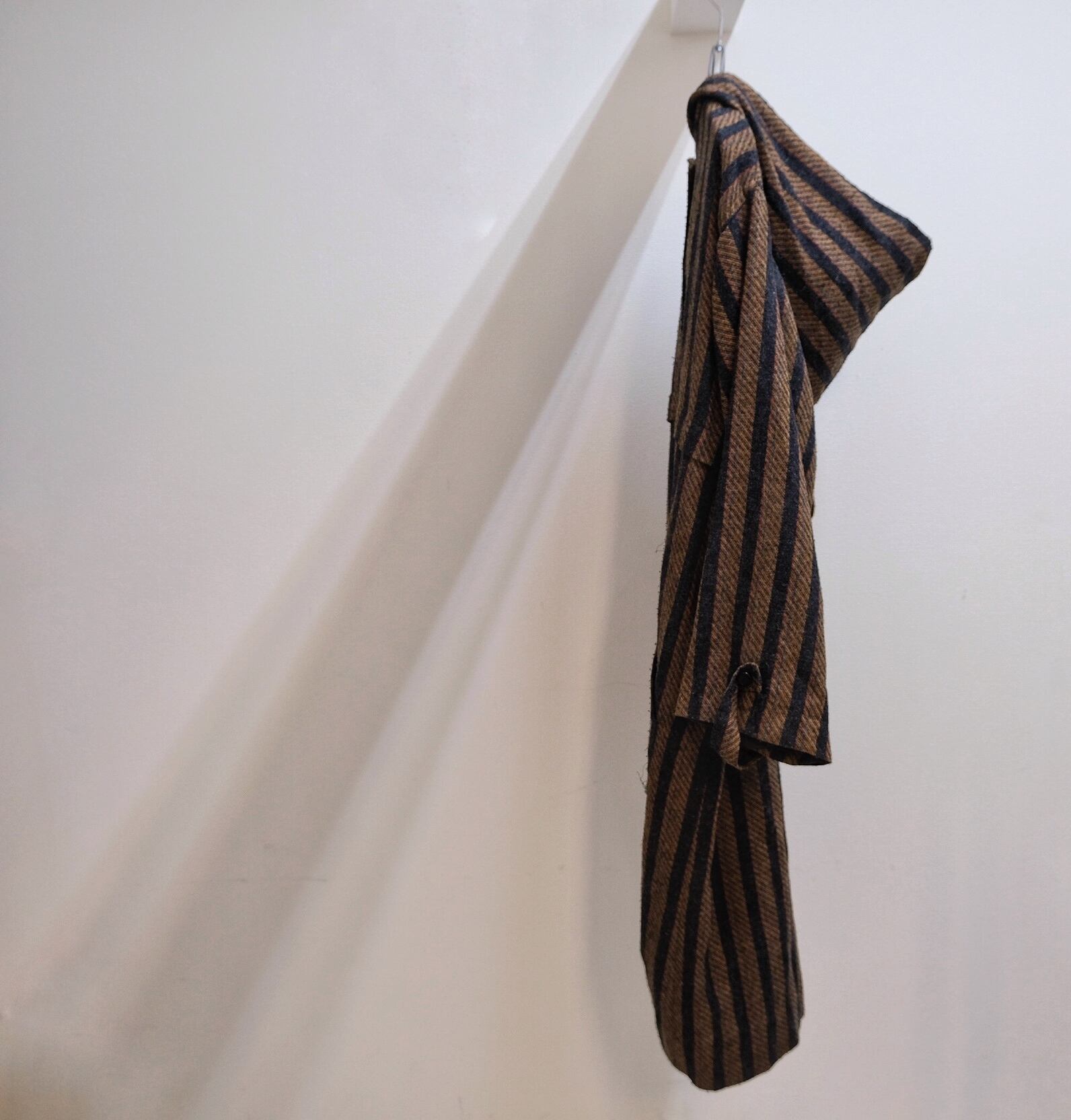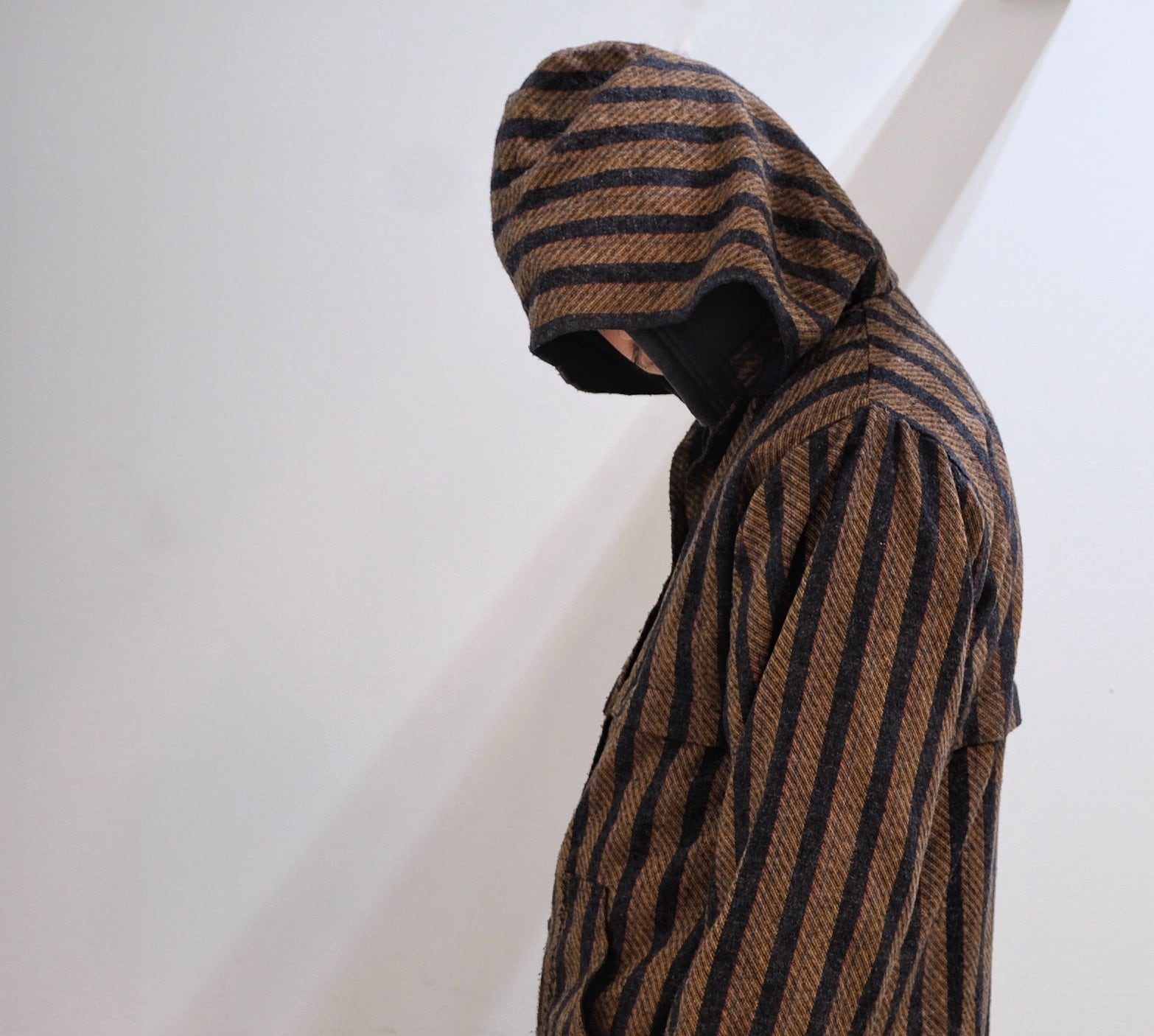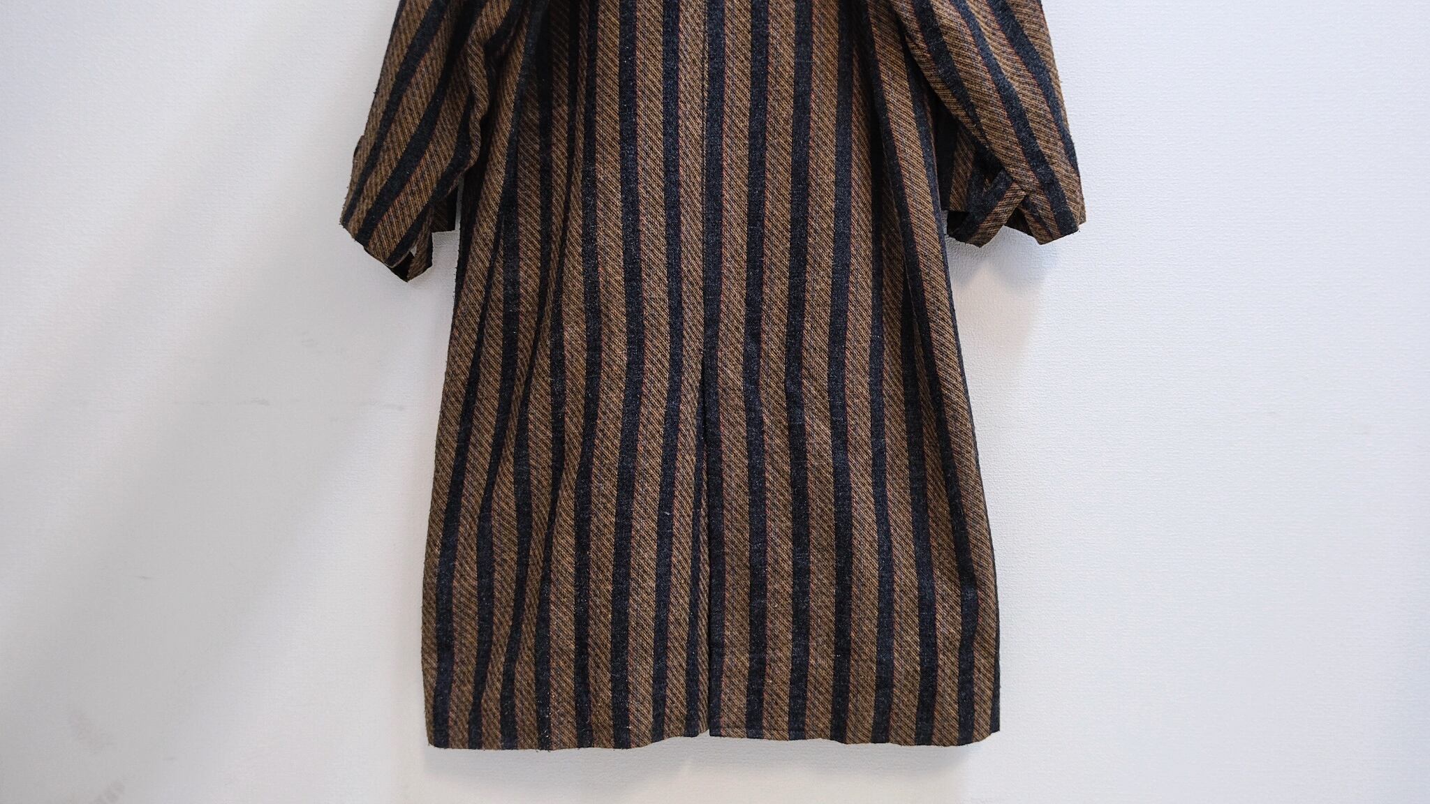 “Moca Moose" Twill Woven Light Wool Stripes Robe Coat
