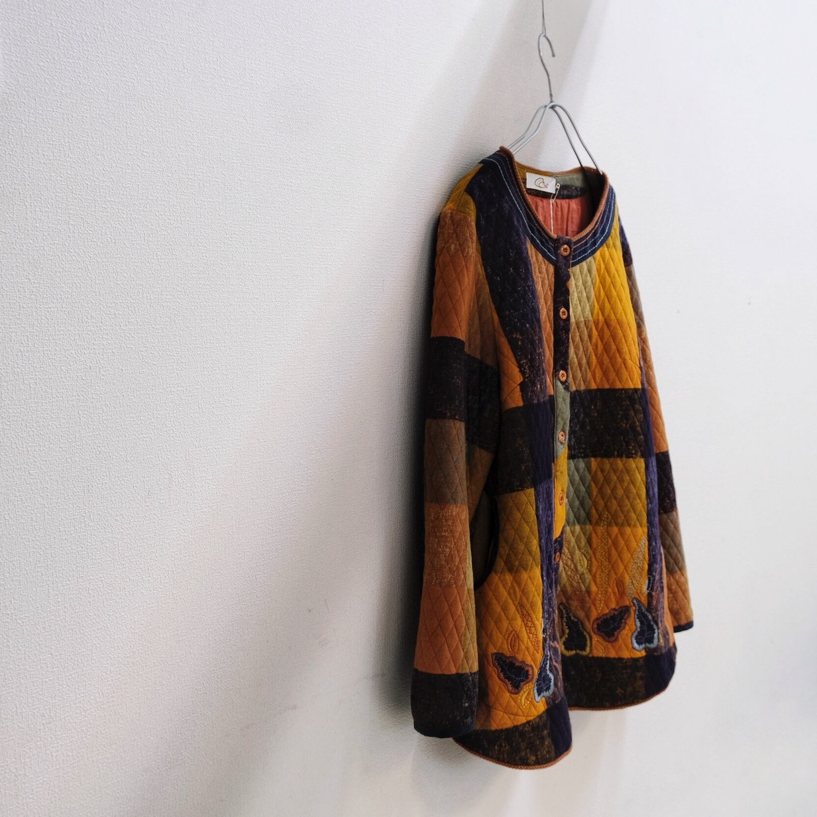 80-90's Autumn Color Quilting Panel Check & Embroidery Jacket