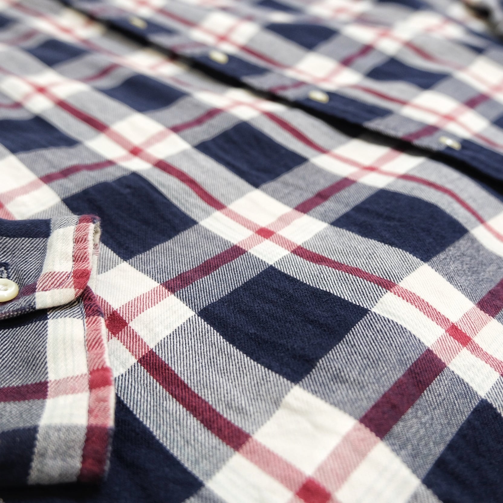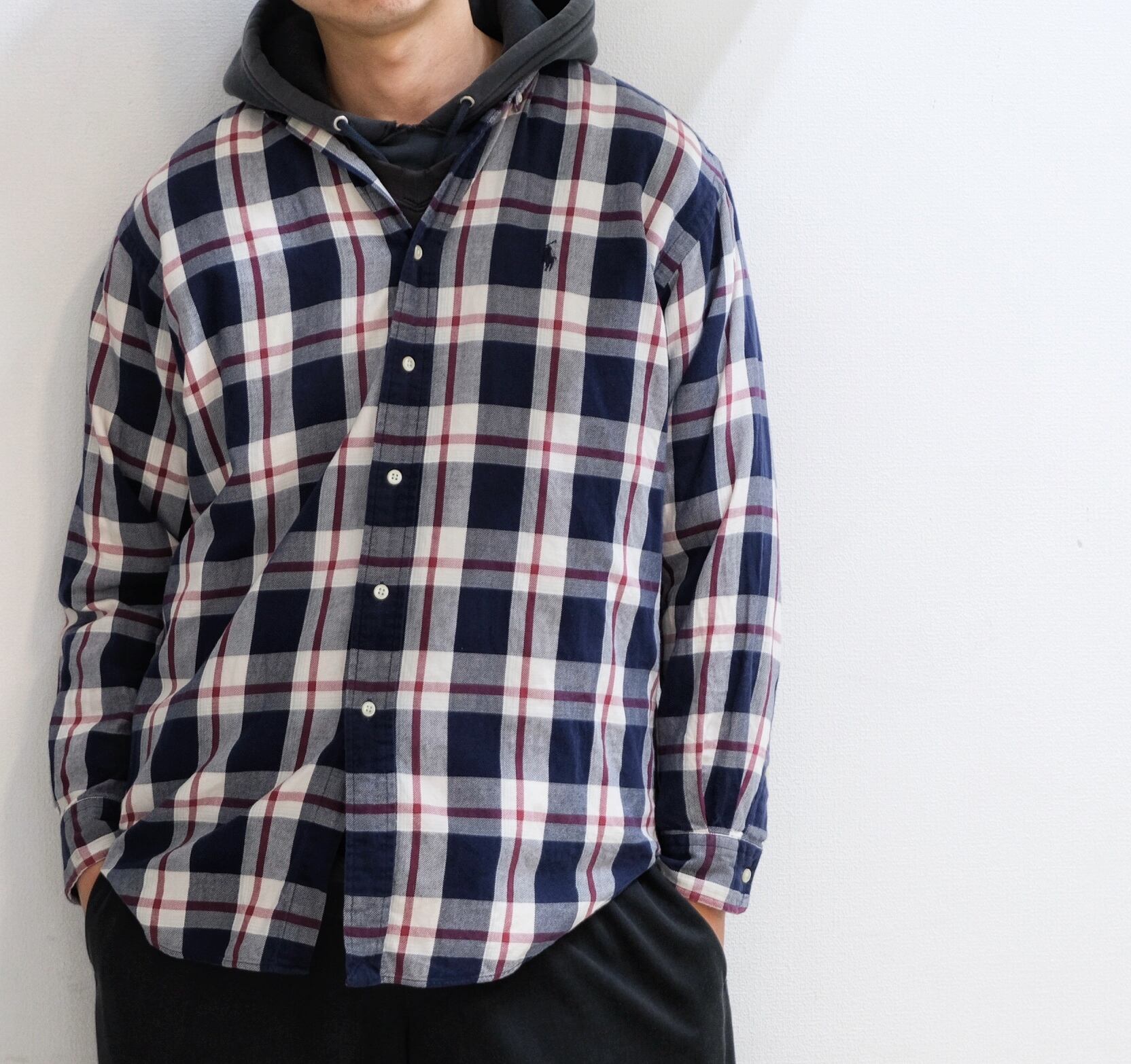 ネイビーベースな為、落ち着きのある大人な佇まいあるラルフローレンのチェックネルシャツ。