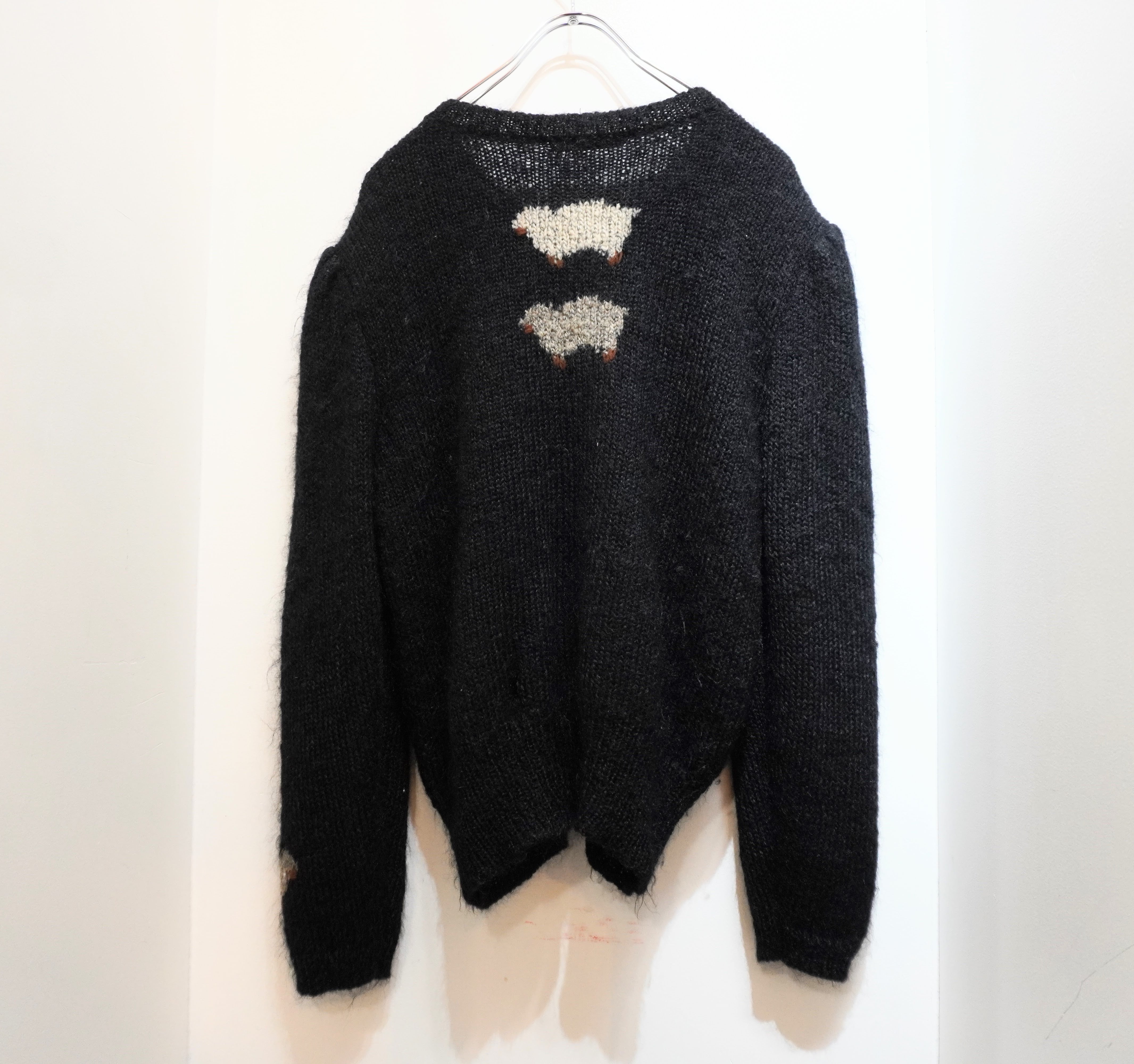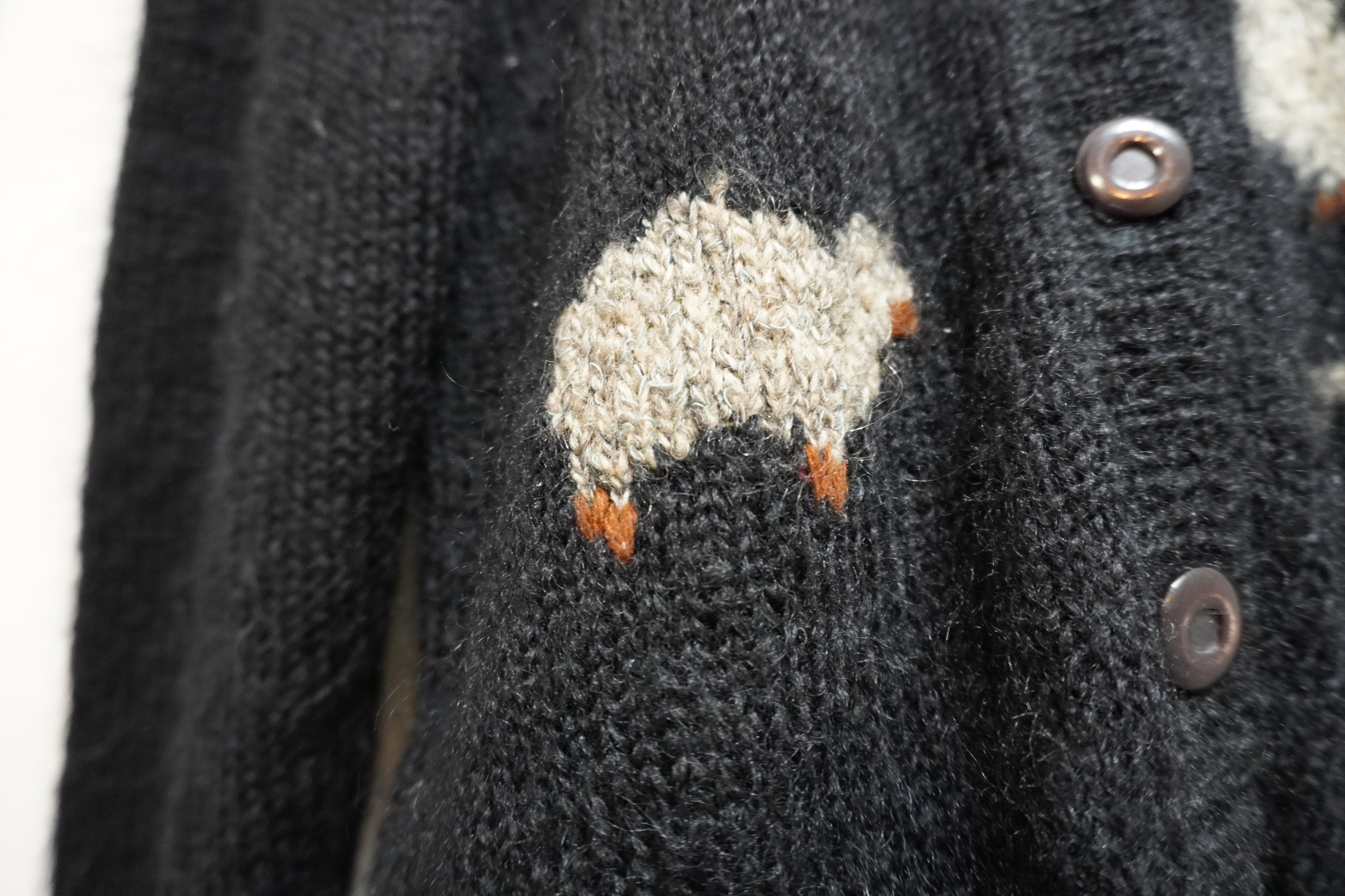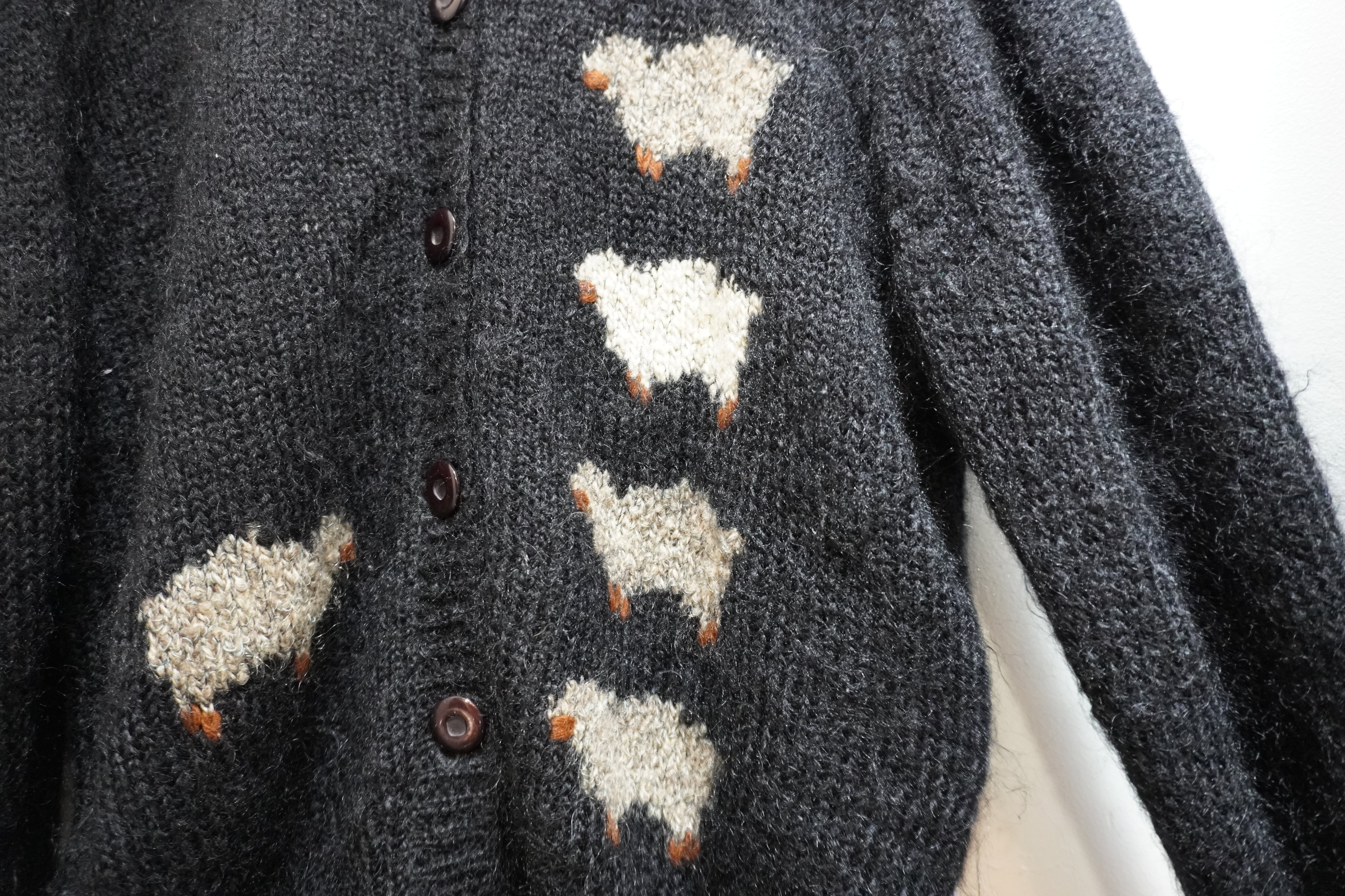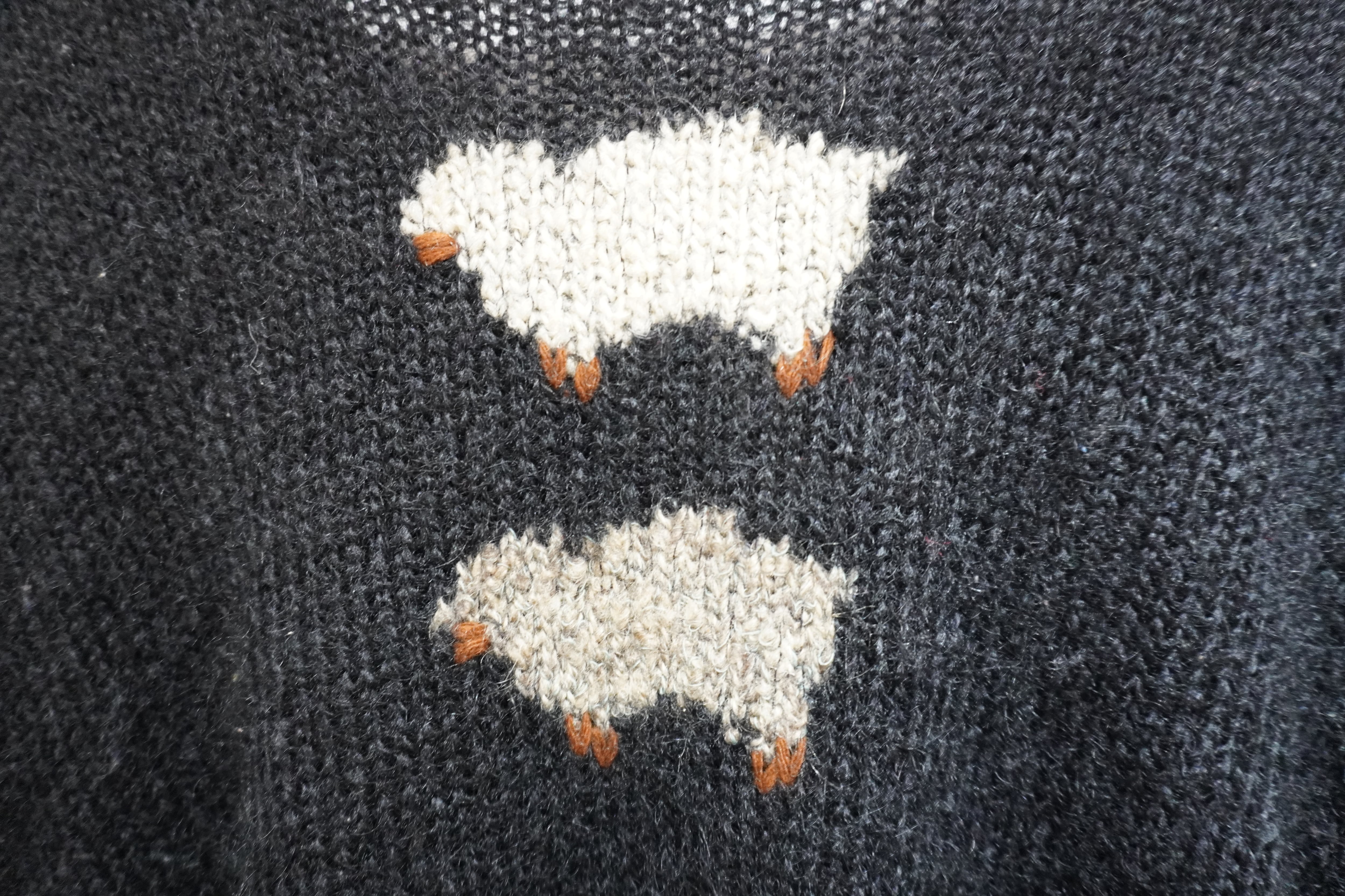 可愛らしい羊が縦一列に配したレトロ感漂うウールニット。