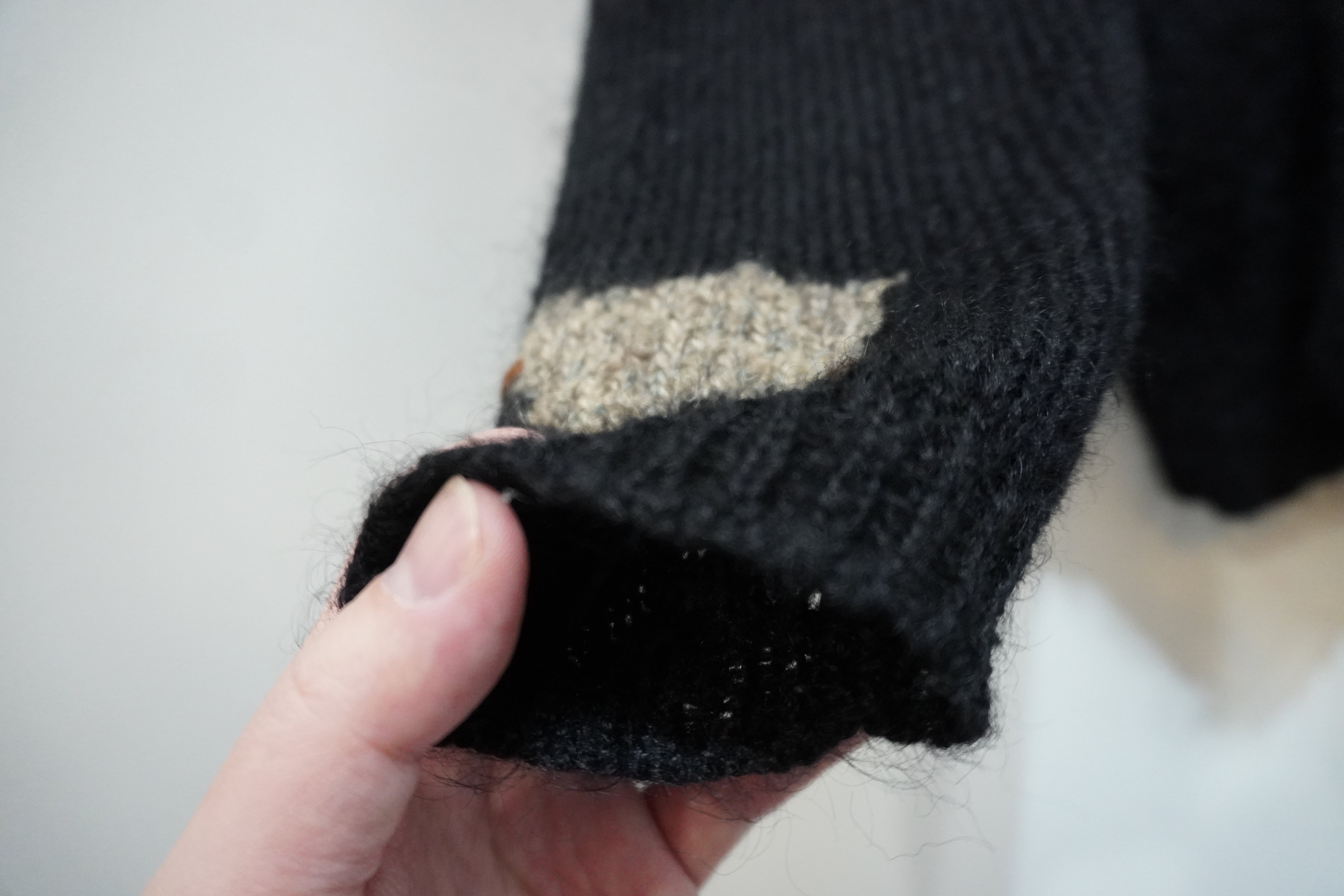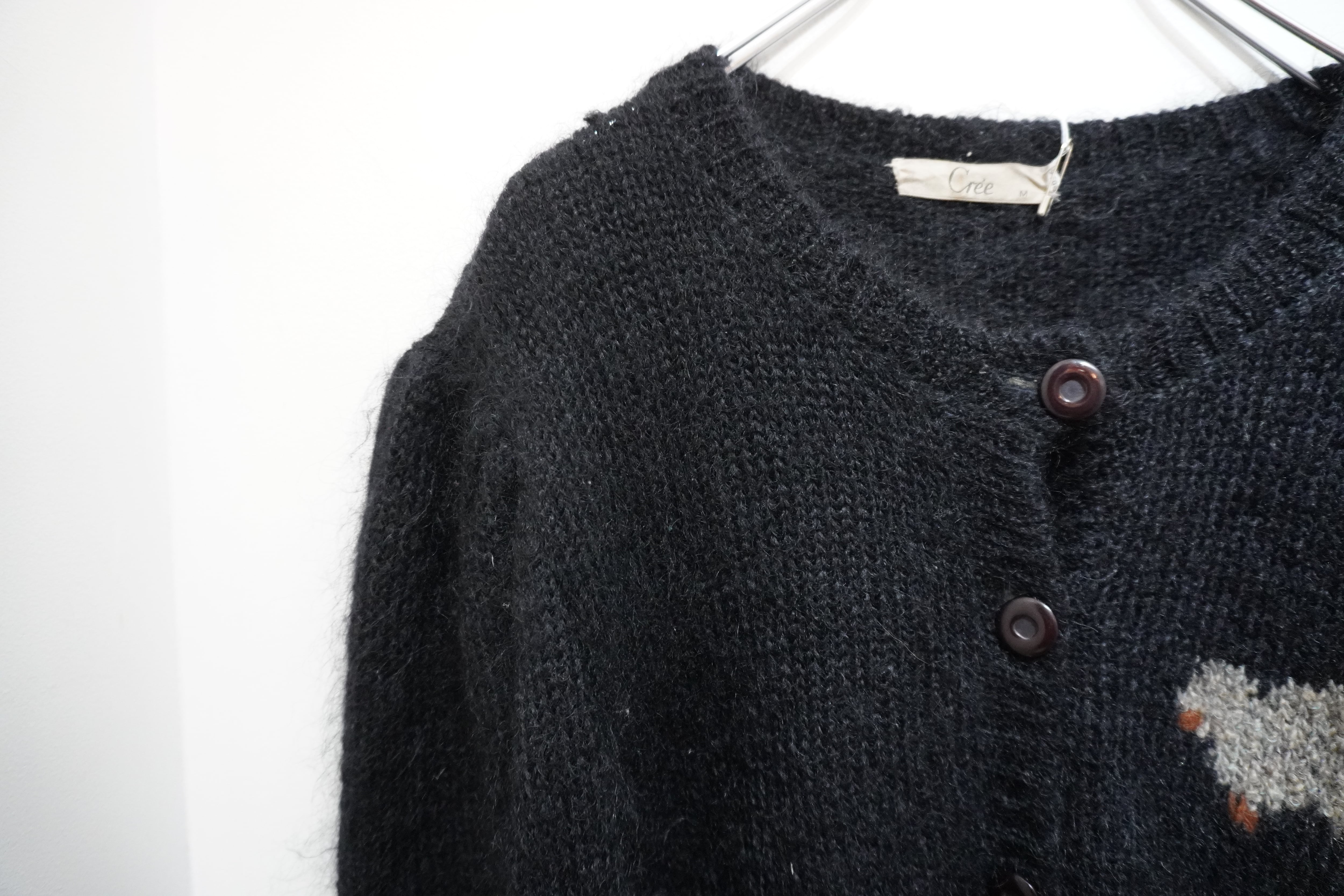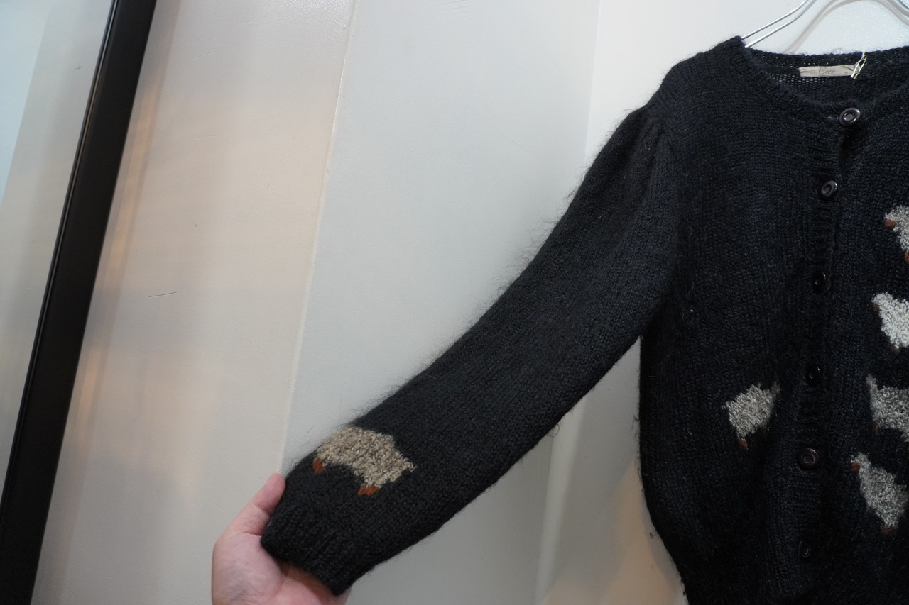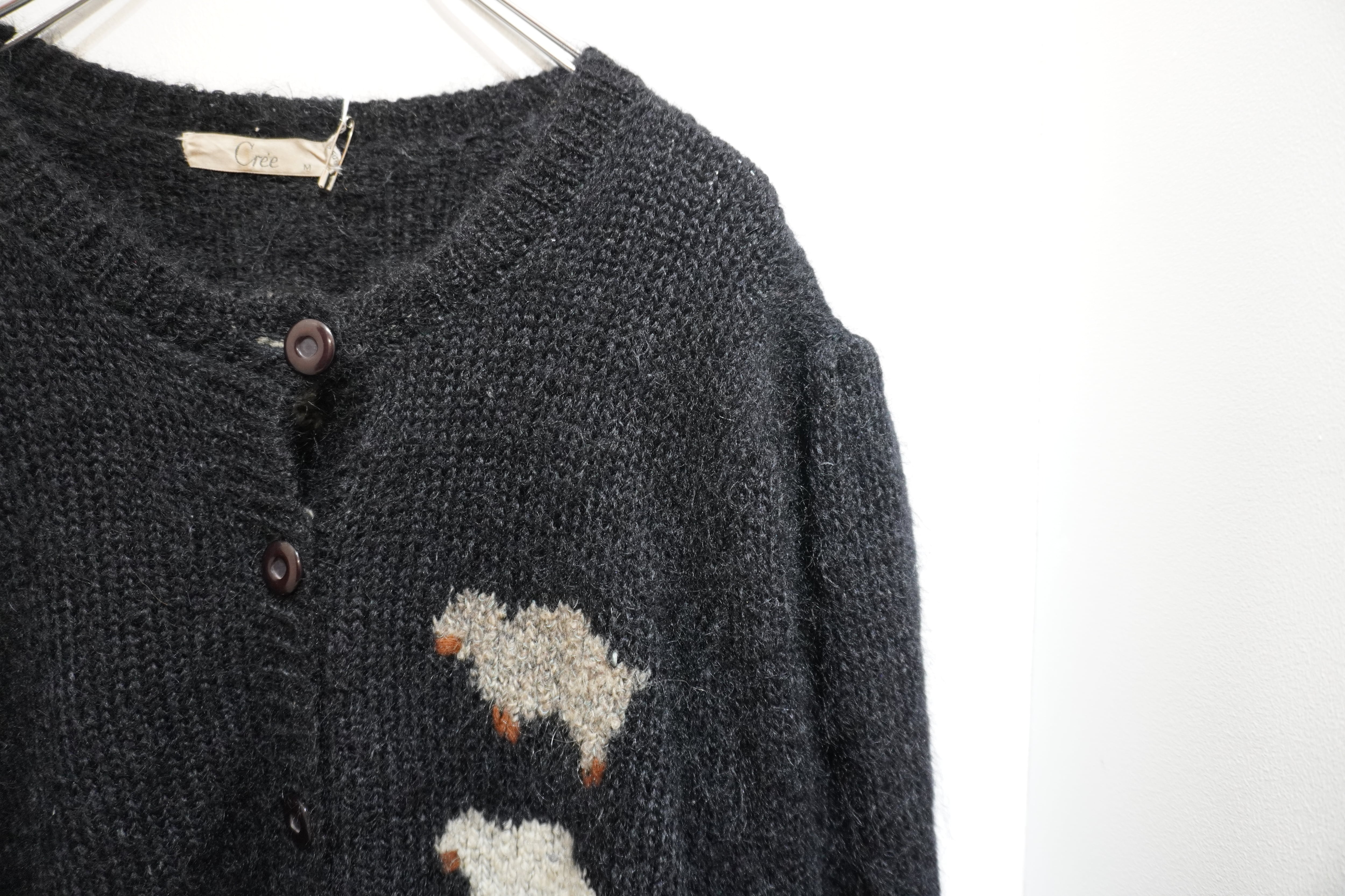 可愛らしい羊が縦一列に配したレトロ感漂うウールニット。