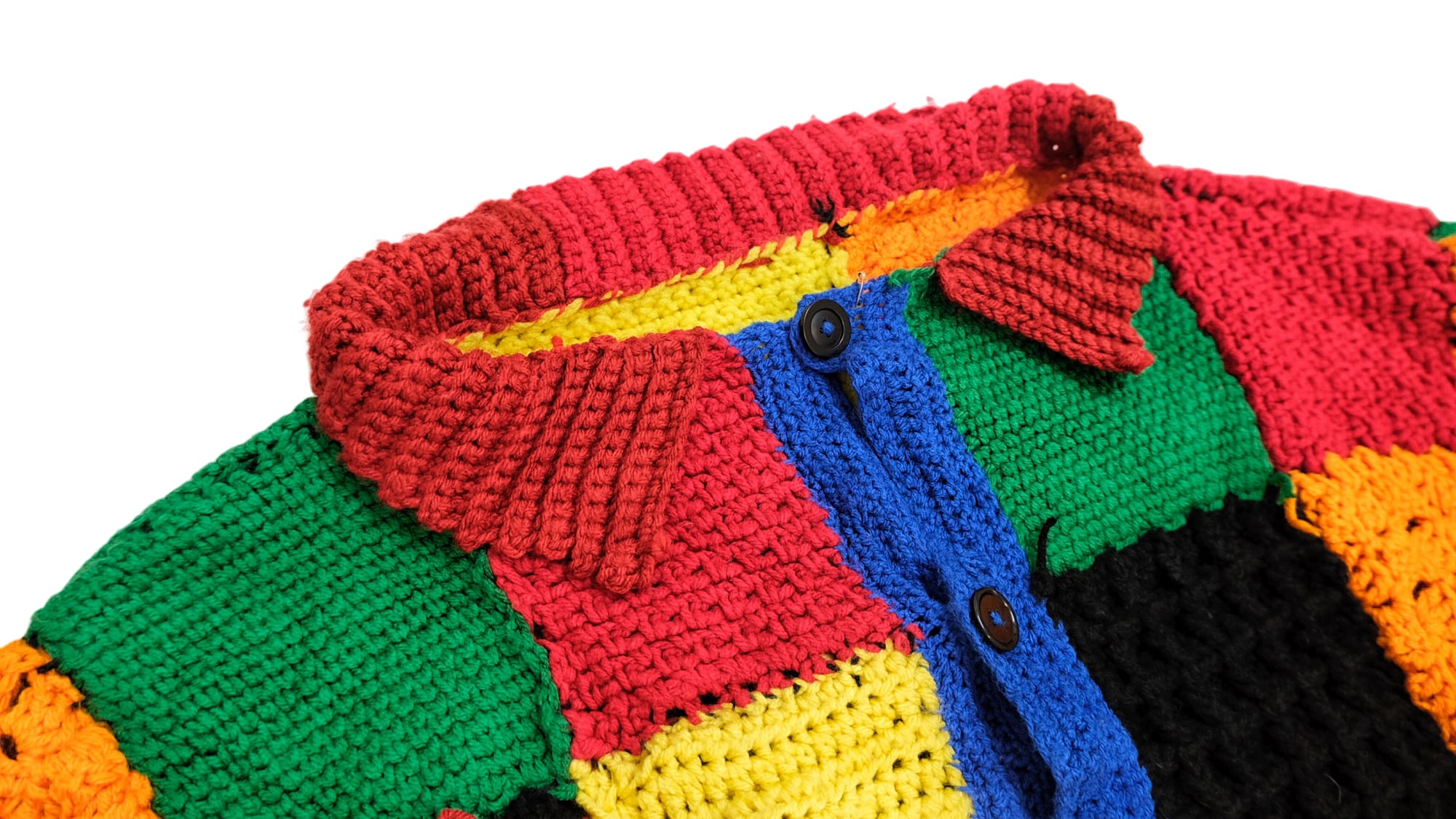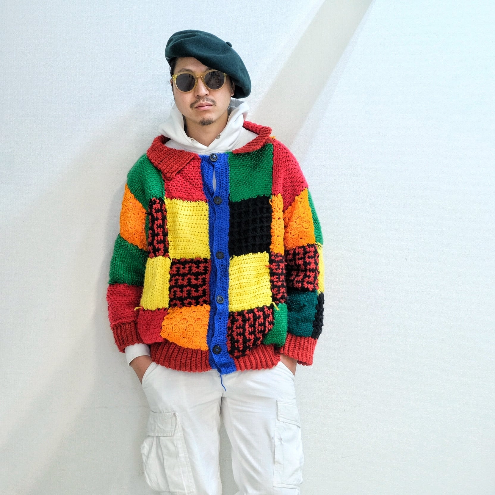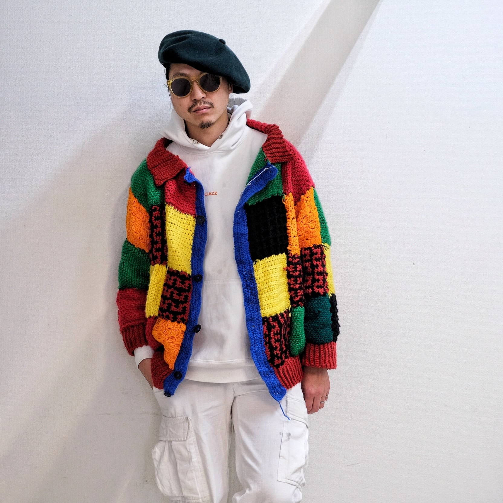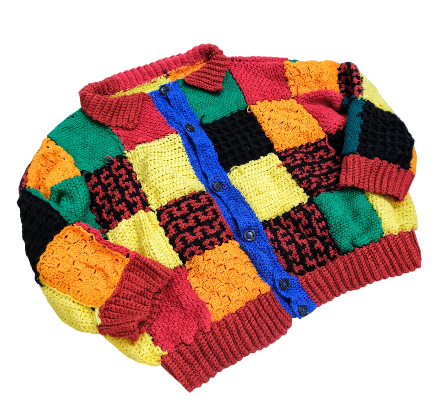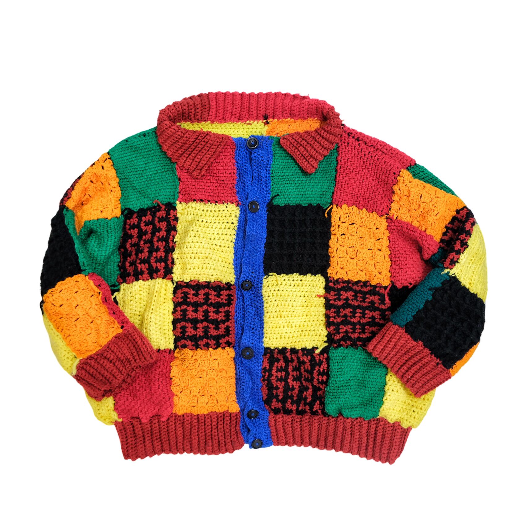 完全手編みの世界で一つだけのクレイジーニットカーディガン。