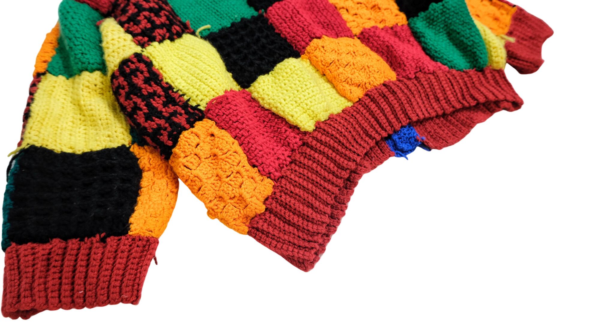 Hand Woven Crazy Pattern Patchwork Knit Sweater